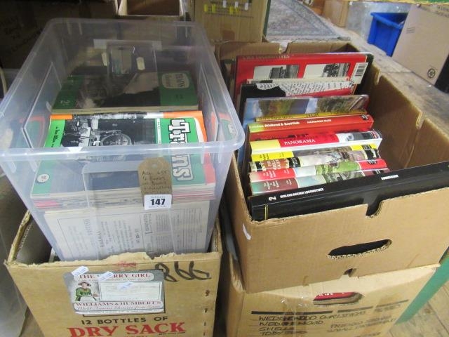 FOUR BOXES OF RAILWAY AND TRAIN RELATED BOOKS AND MAGAZINES
