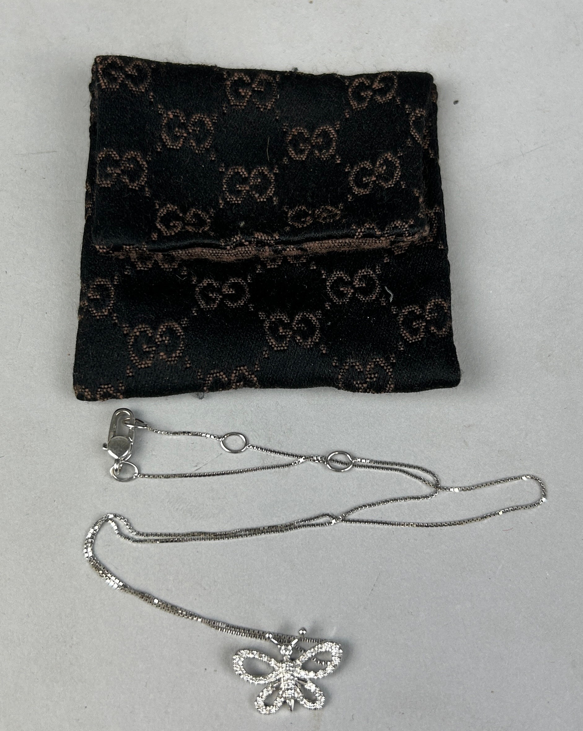 AN 18CT WHITE GOLD GUCCI NECKLACE,
