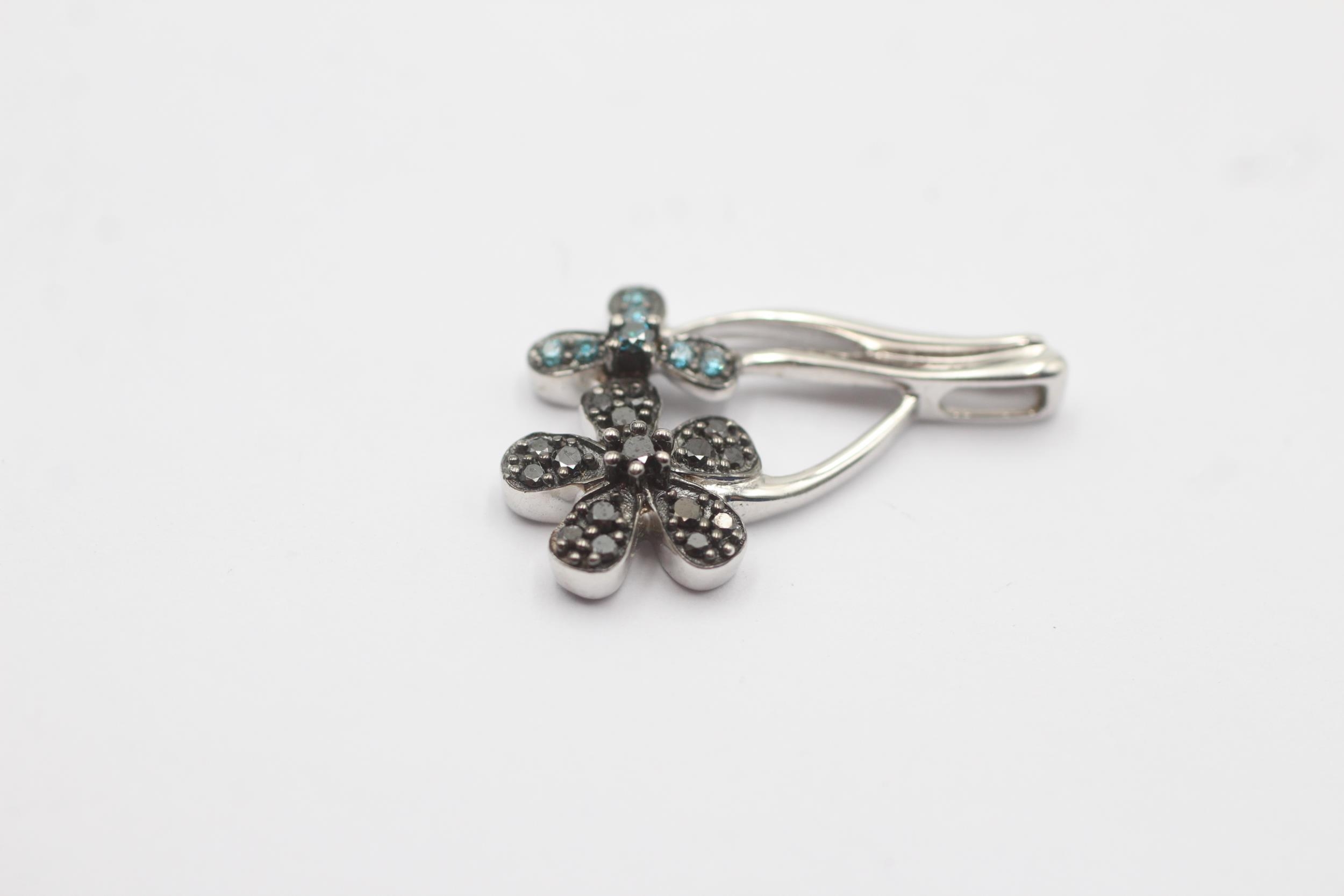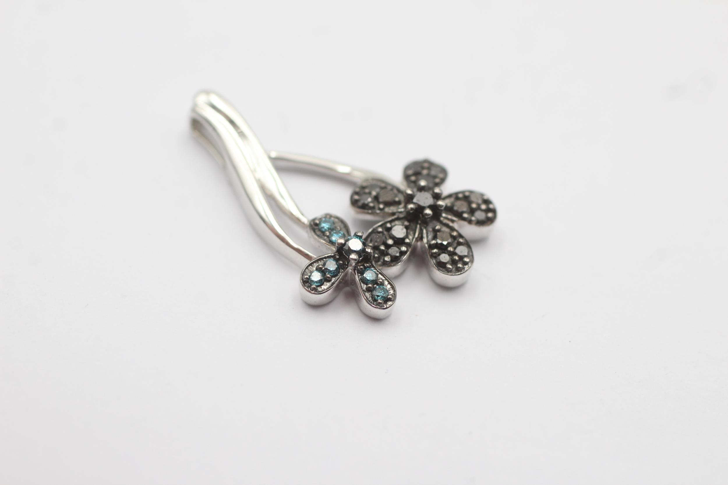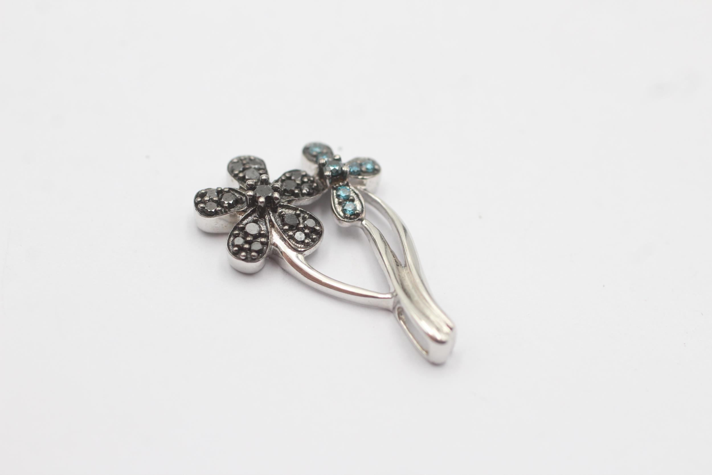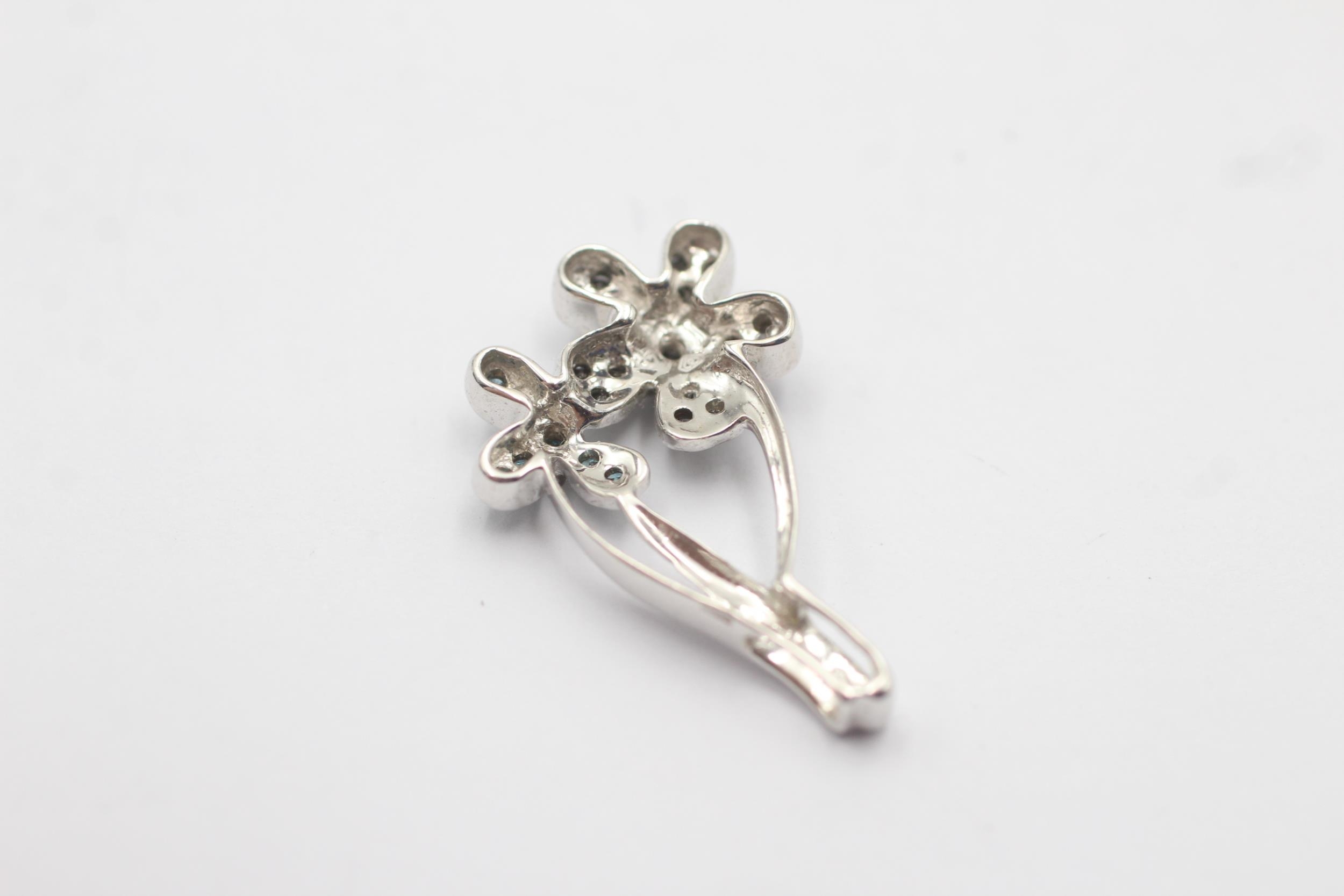 9ct White Gold Enhanced Diamond Paved Double Flower Drop Charm Pendant (2.4g)