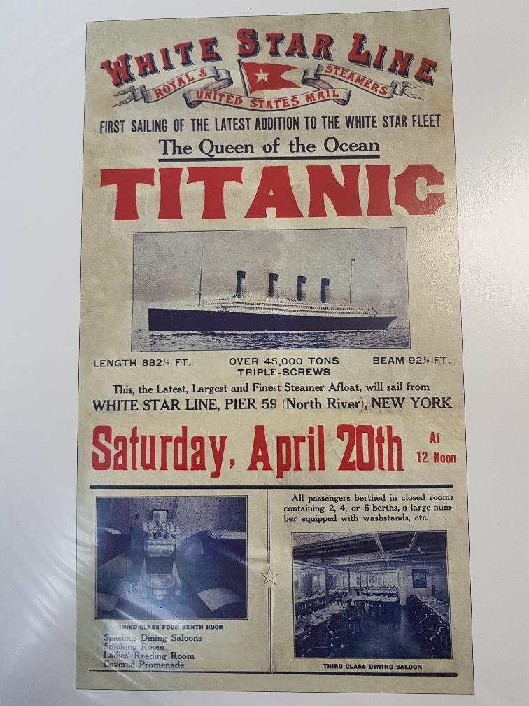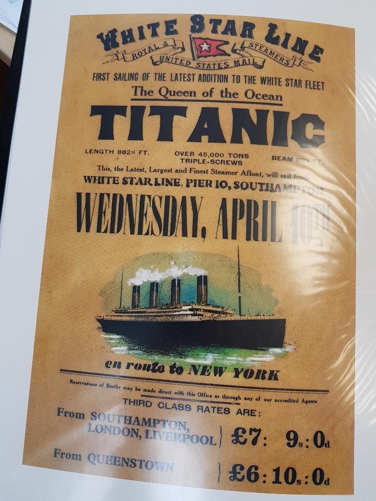 Two Albums containing reproduction posters on card including travel, Titanic, Monaco, WW2, Railway etc. Card size is 41cm x 30cm