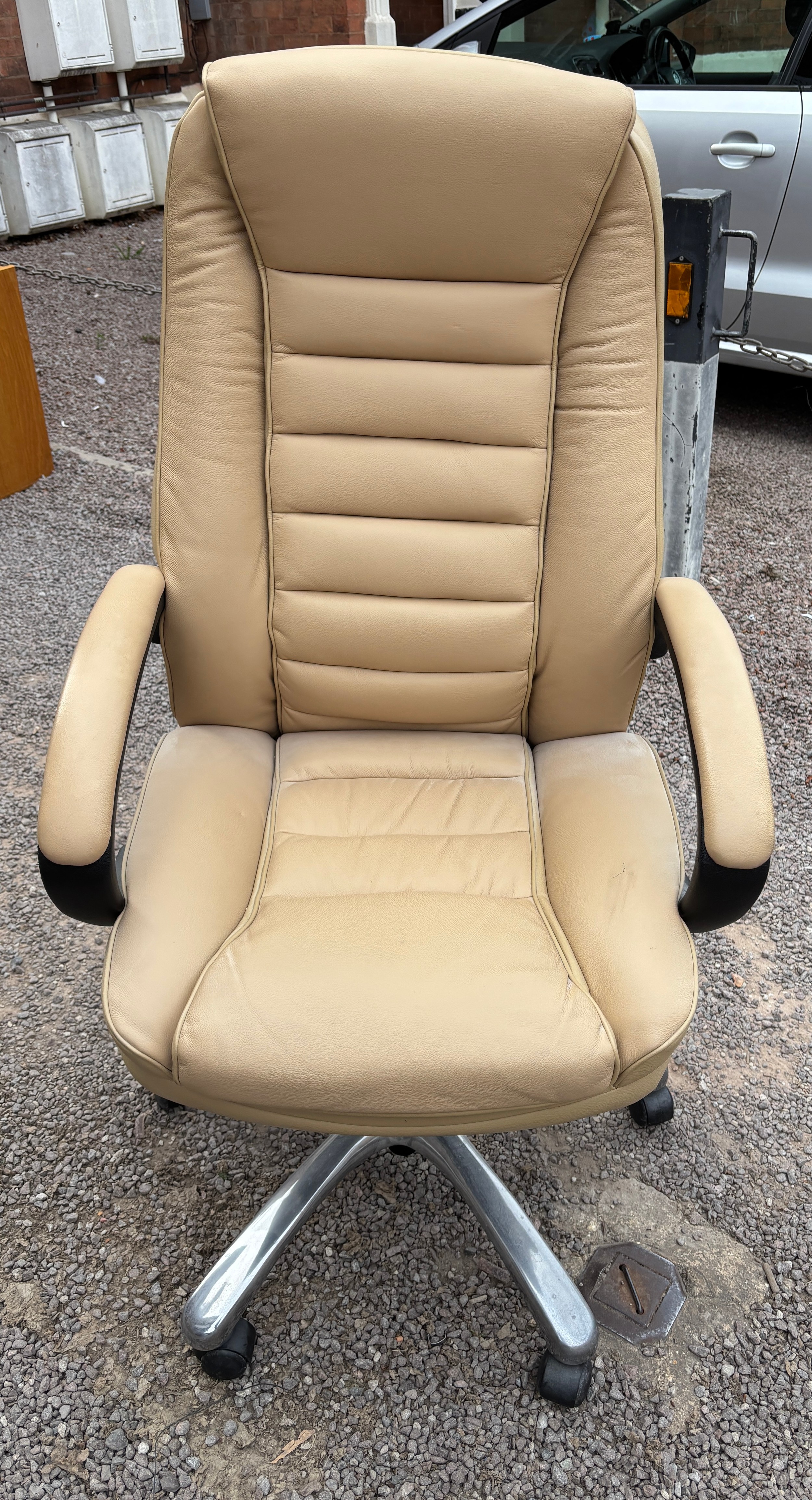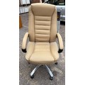 CREAM EXECUTIVE STYLE LEATHER OFFICE SWIVEL ARMCHAIR