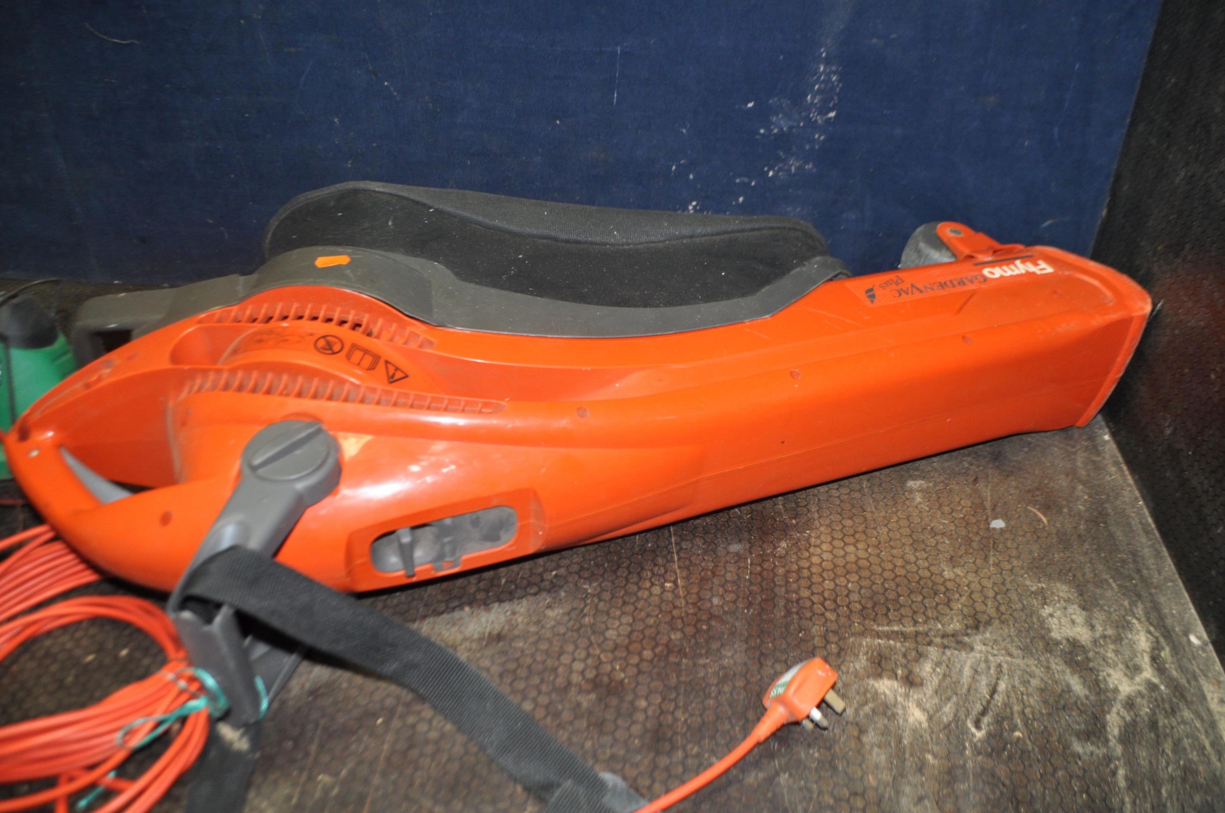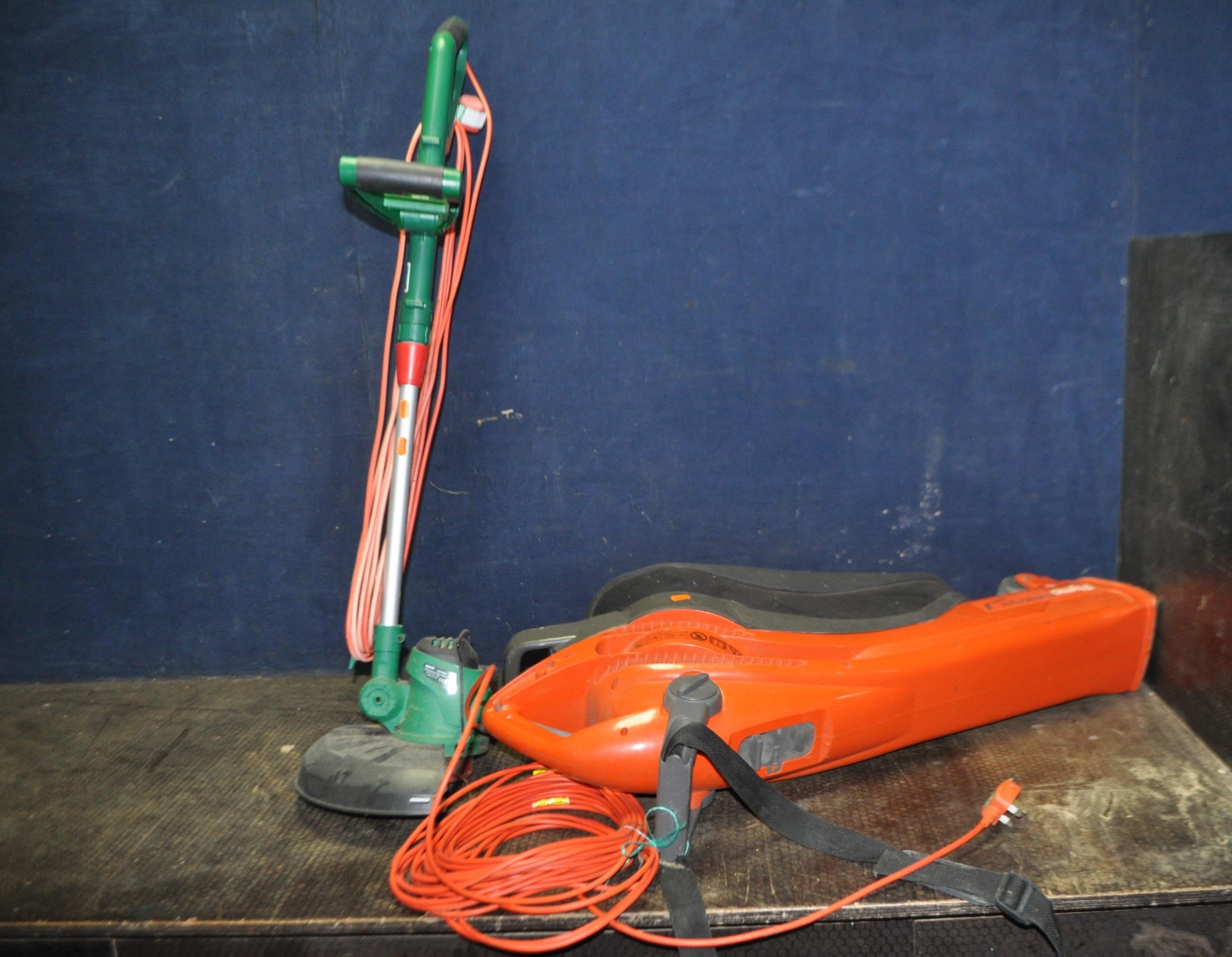 A FLYMO GARDEN VAC PLUS with tatty box and a Qualcast strimmer (both PAT pass and working) (2)