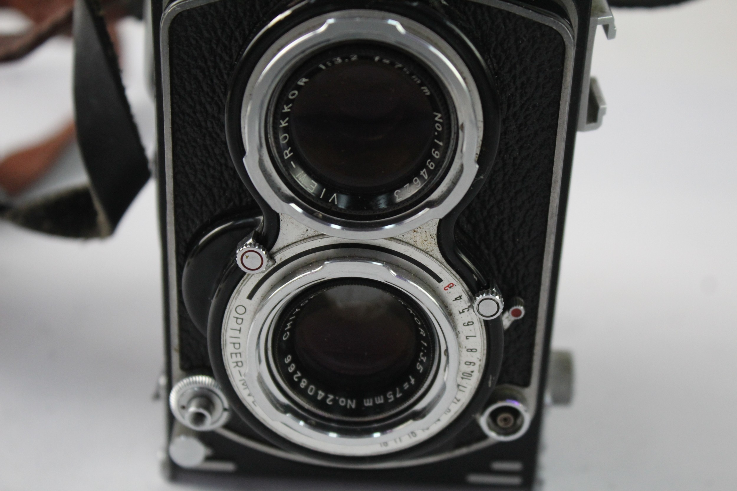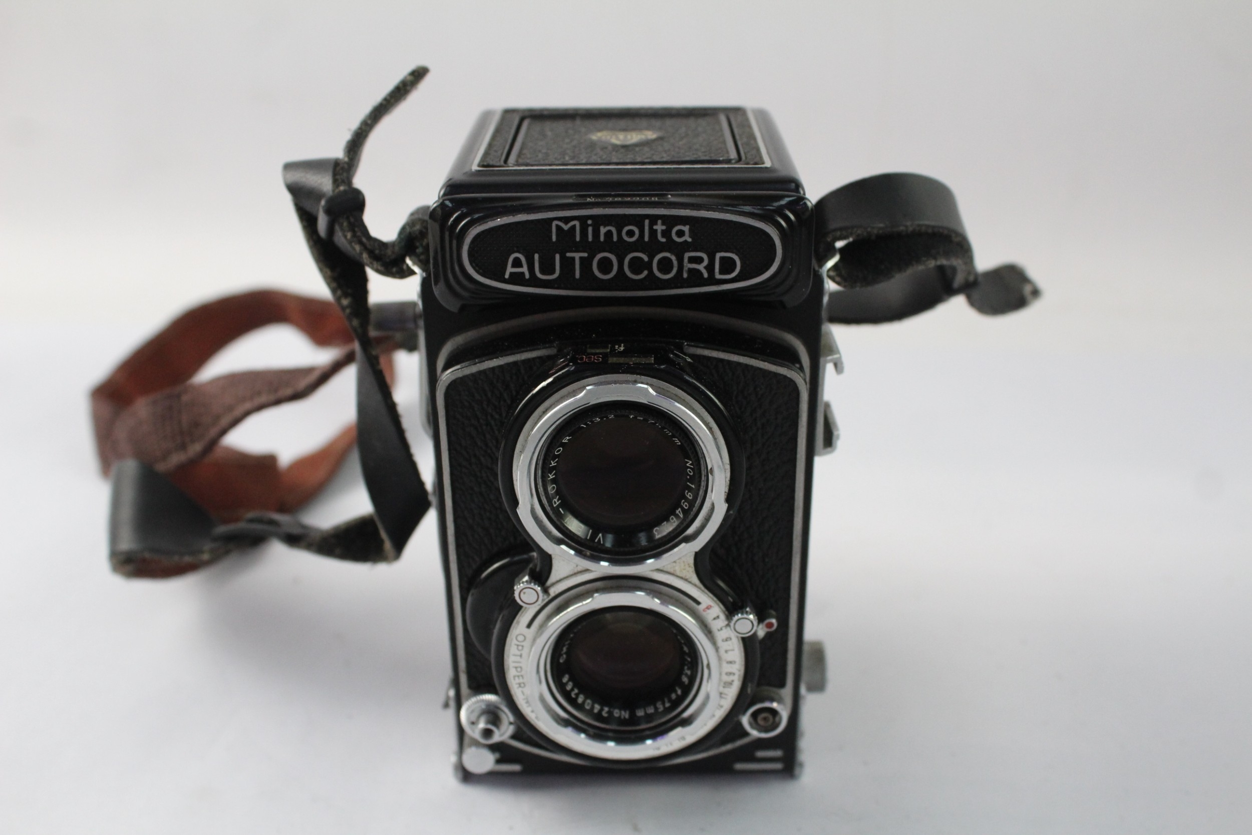 An early 1960s Chiyoda Kogaku Seiko K.K. Minolta Autocord RG TLR camera for 120 film fitted with Optiper-MVL shutter, Rokkor 1:3.2 75mm viewing and Rokkor 1:3.5 75mm taking lenses - made in Japan