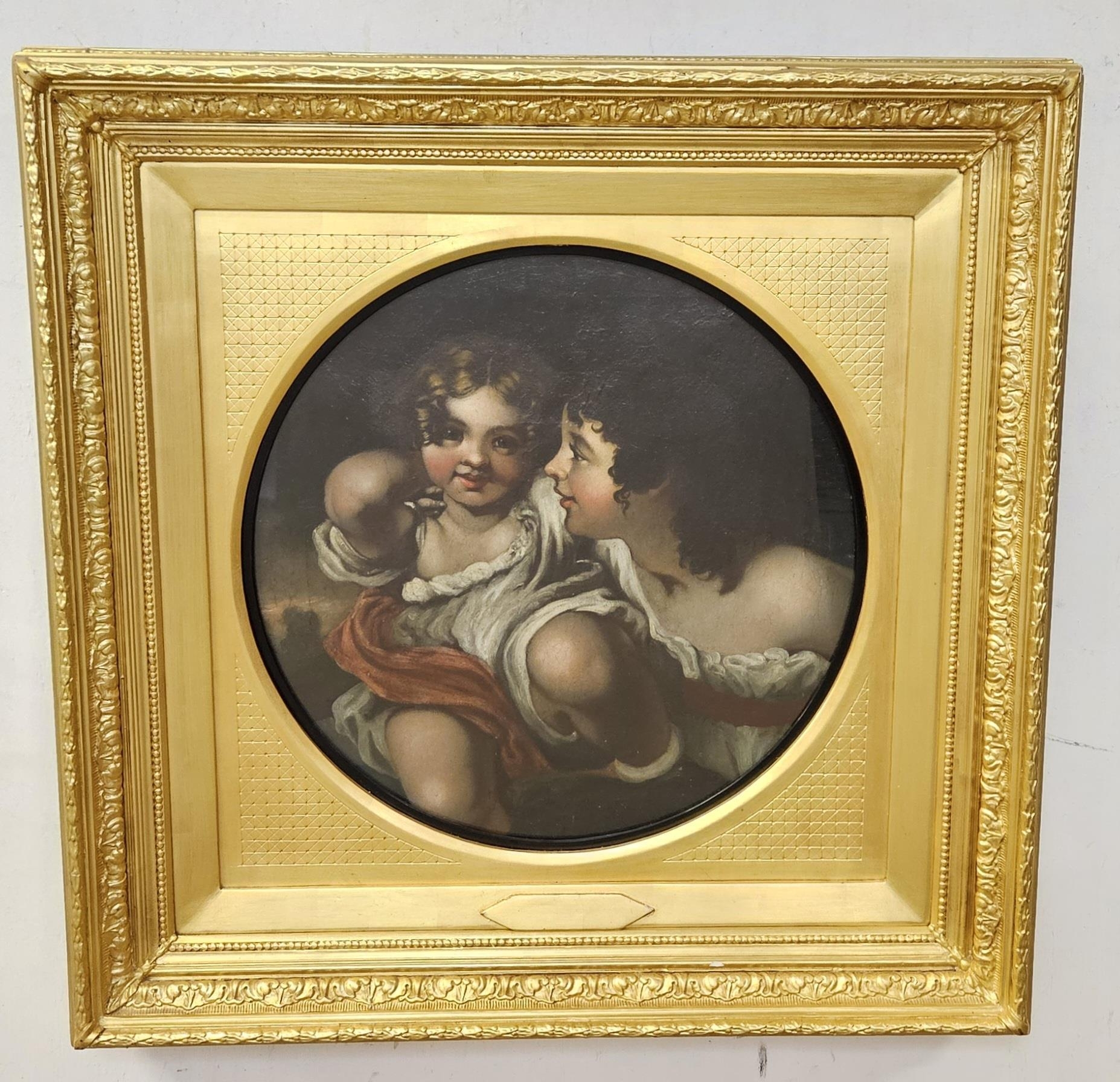 After Raphael, Oil on Board "Mother's Love", a circular portrait in a decoratively moulded gilt frame, 74cm x 74cm