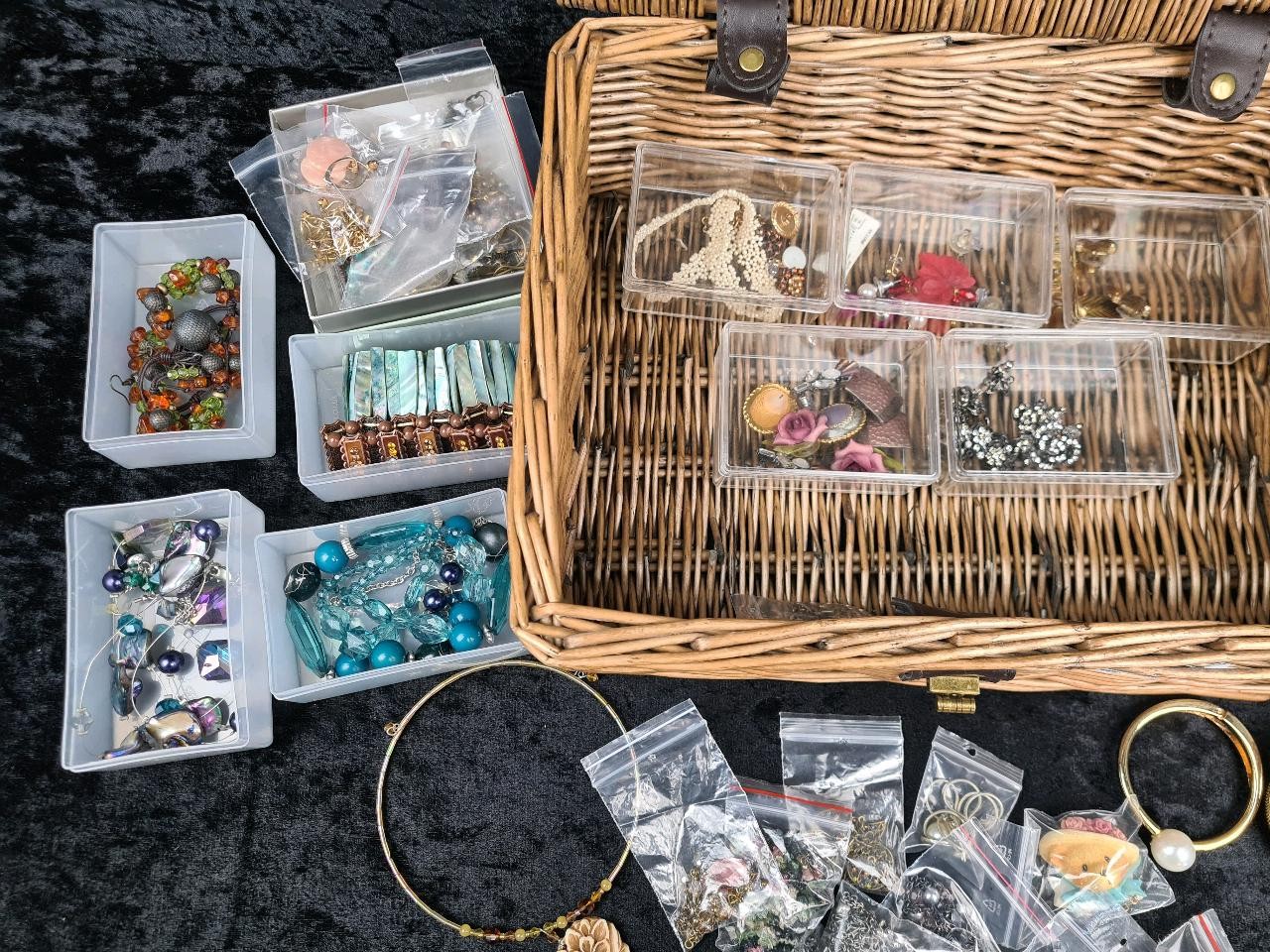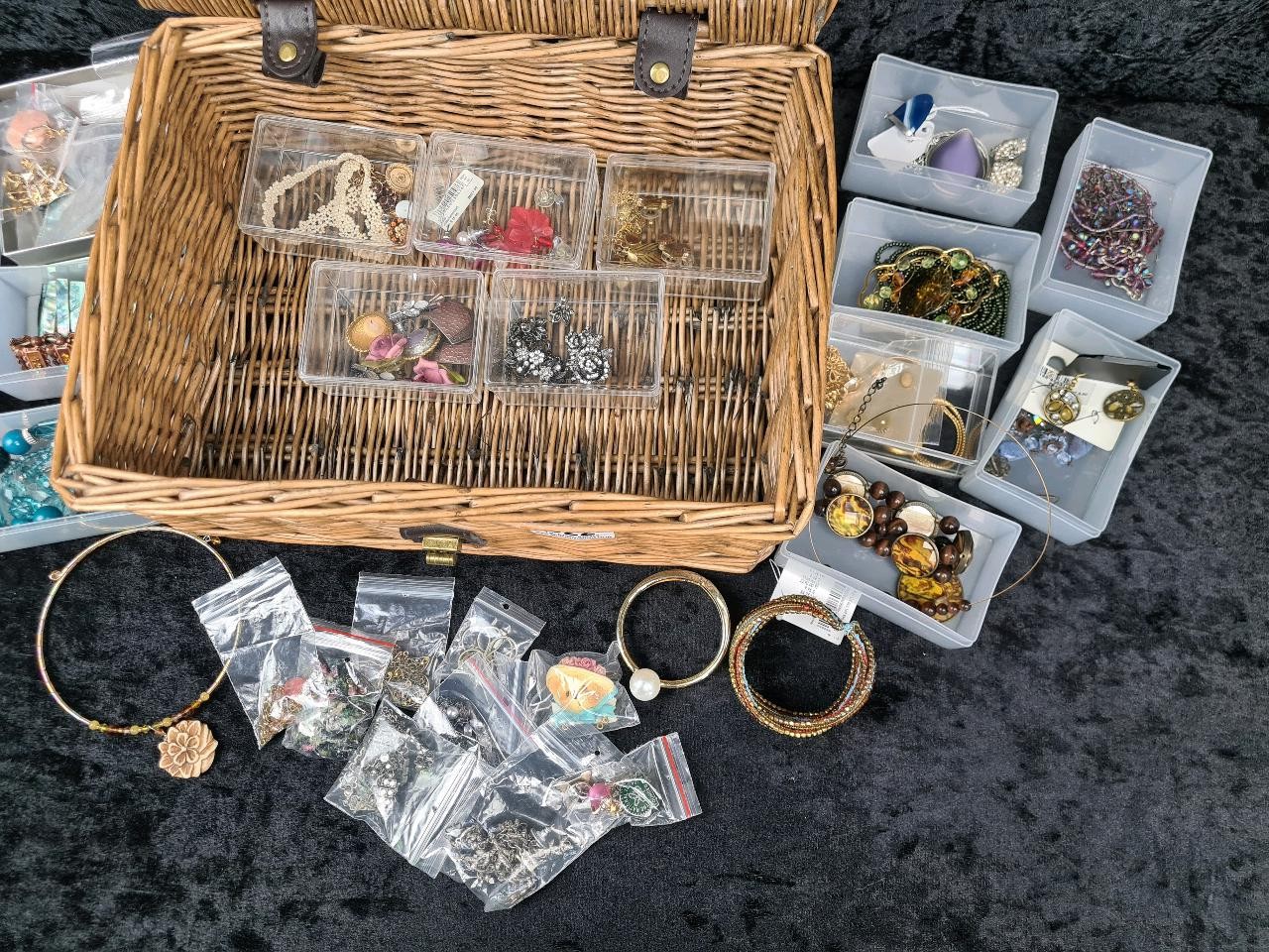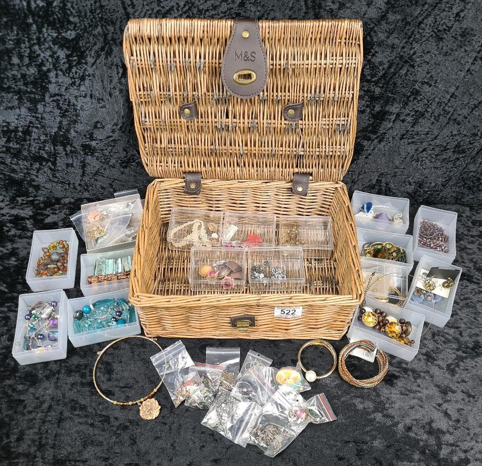 Huge collection of costume jewellery in a neat M&S hamper - necklaces, brooches, bangles, earrings etc. All nicely bagged and tidy!