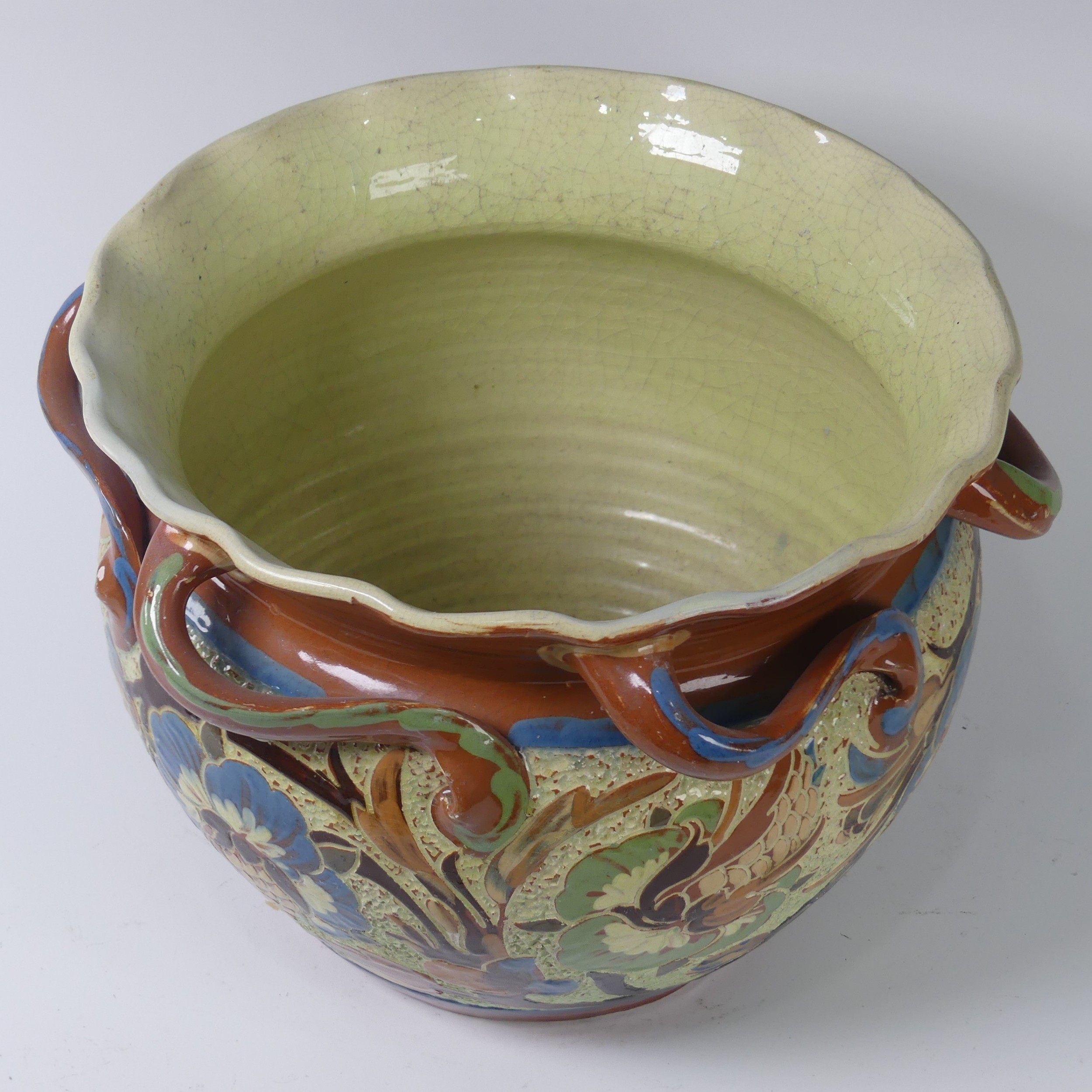 A C. H. Brannam Barum pottery Jardinière dated 1900, with tw...