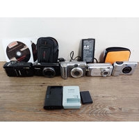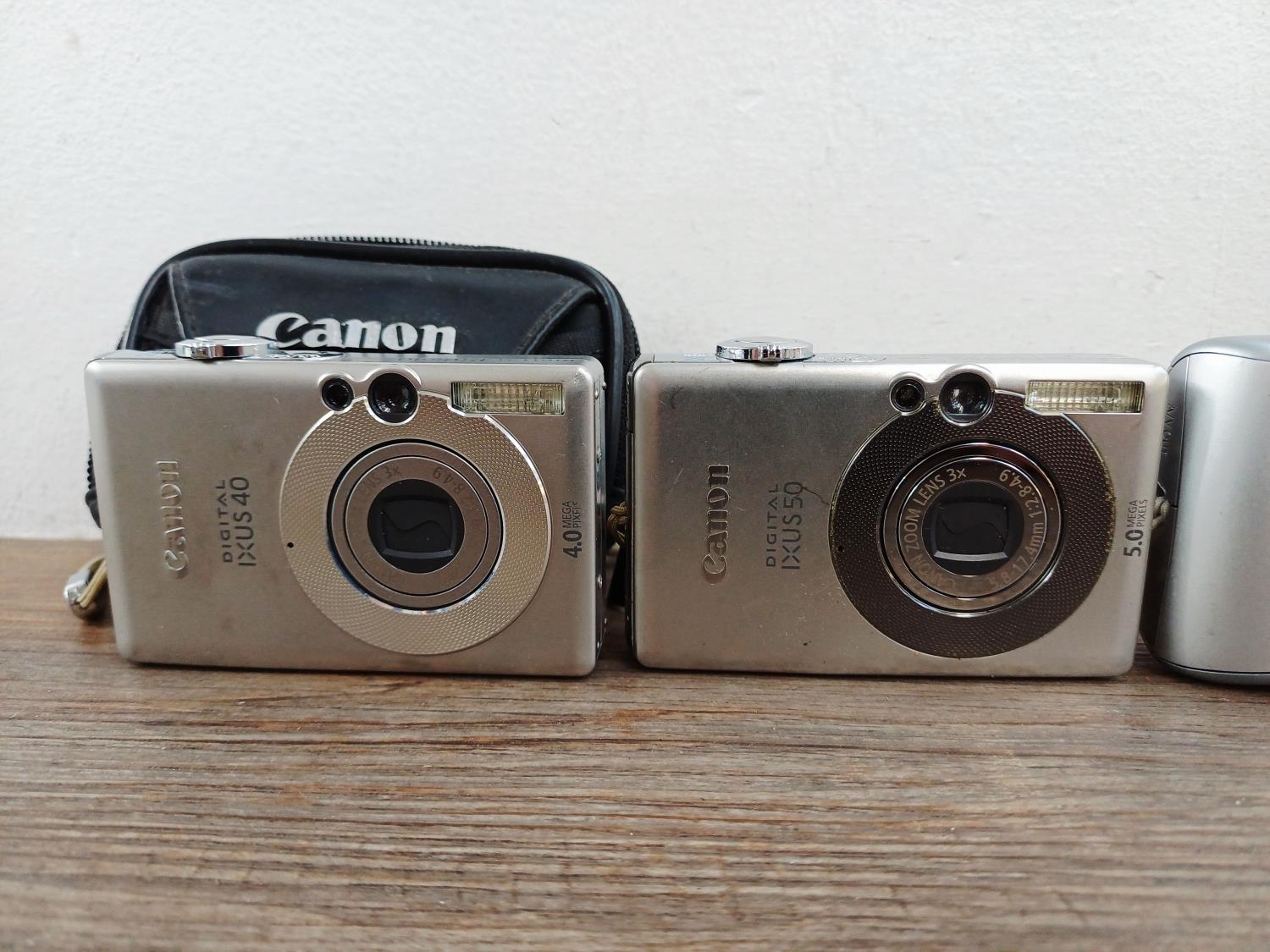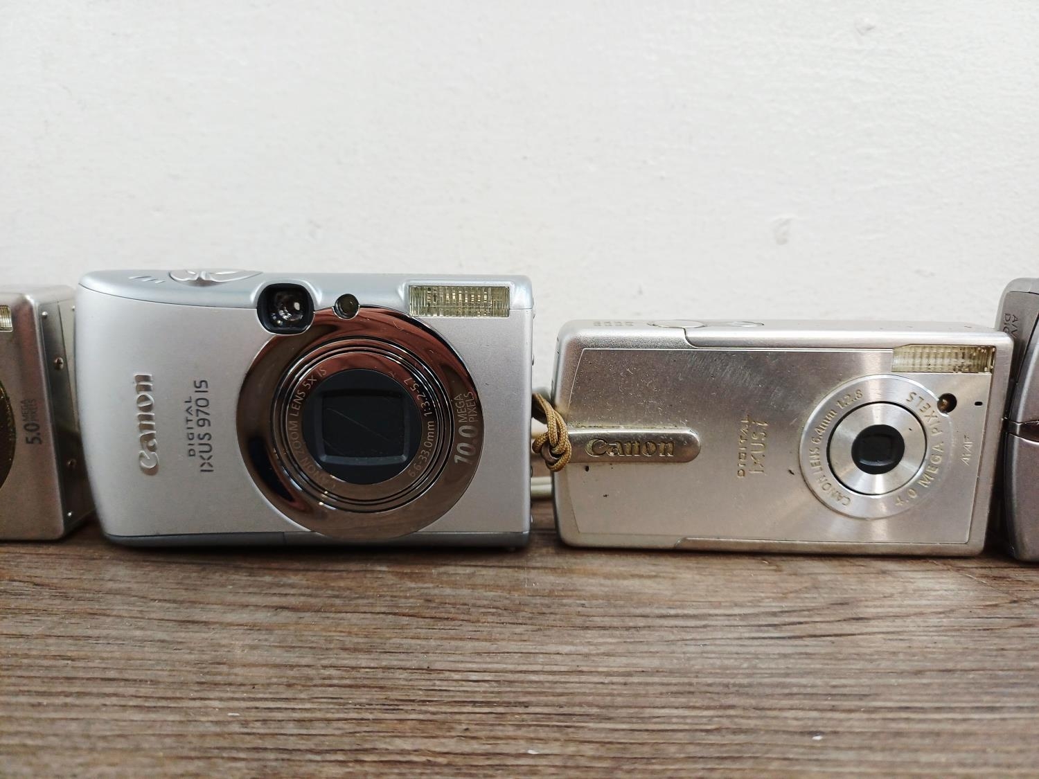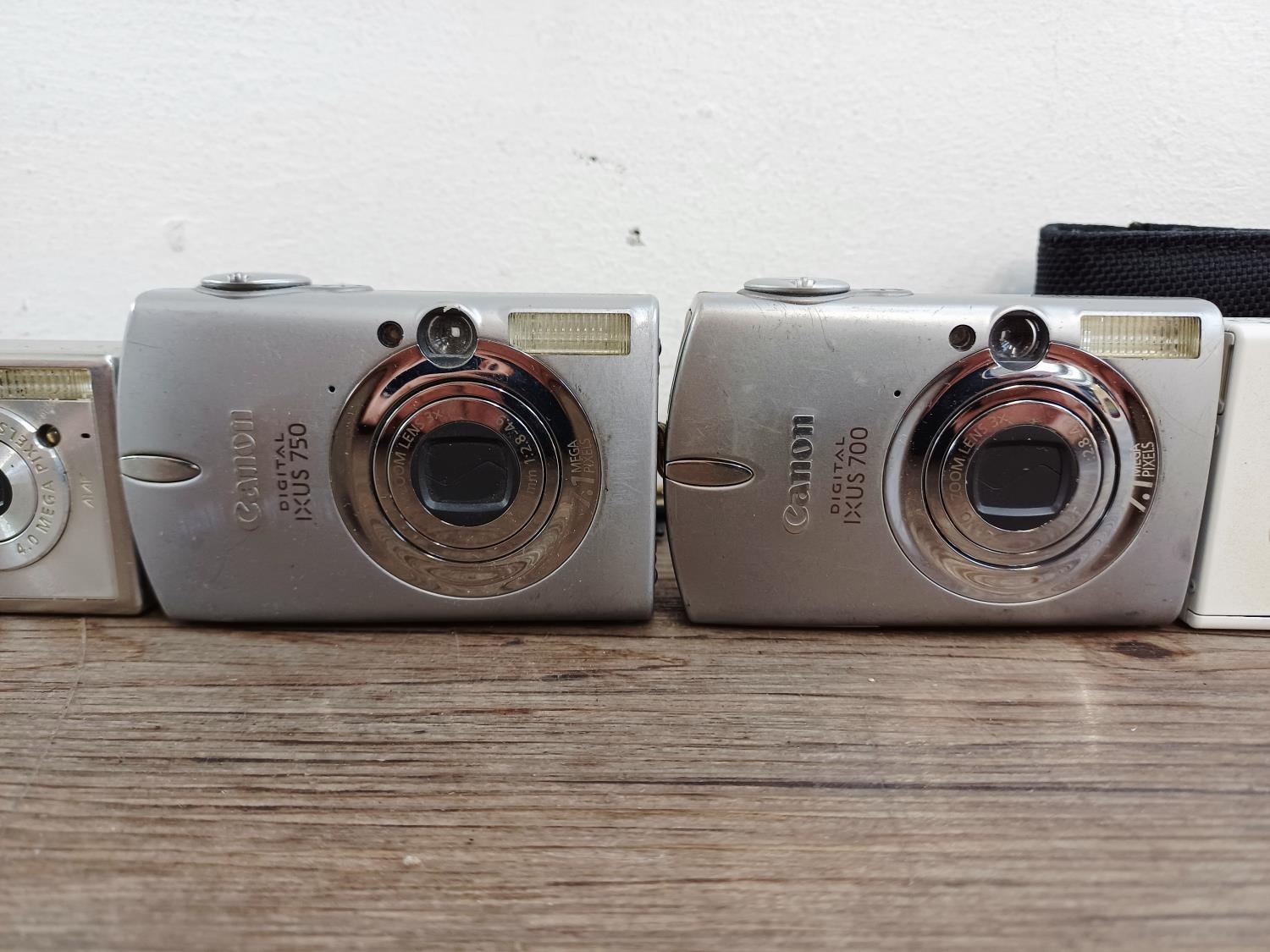 Seven Canon IXUS compact digital cameras to include cased 510 HS 10mp BSI-CMOS sensor, 970 IS 10mp CCD sensor, 750 7.1mp CCD sensor etc.