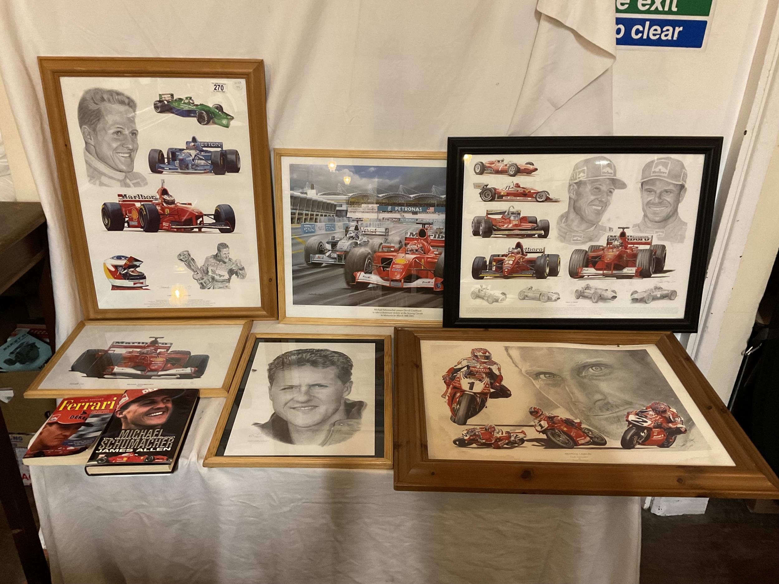 ASSORTED MOTOR RACING ITEMS, PICTURES AND BOOKS MAINLY MICHAEL SCHUMACHER