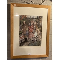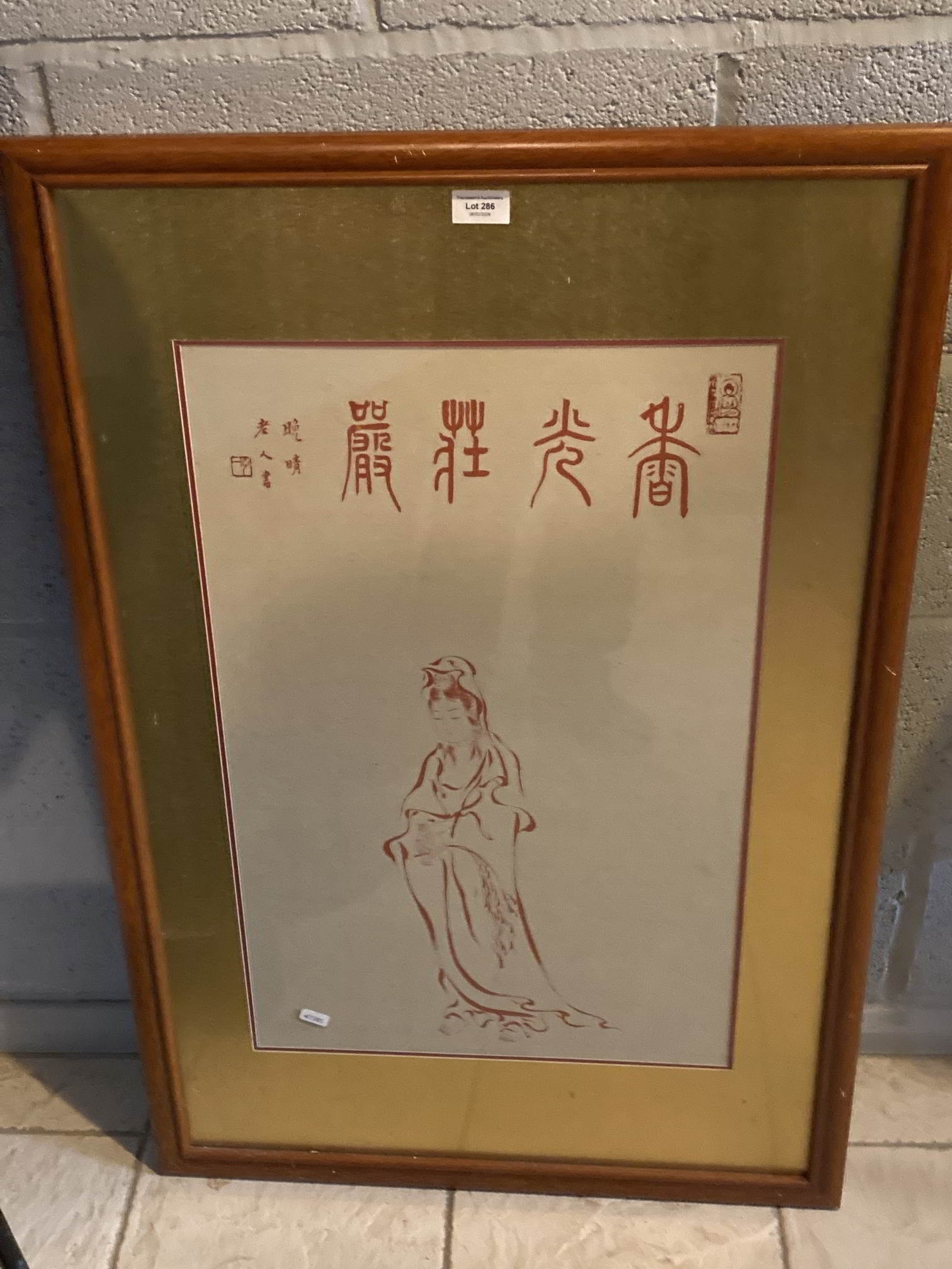 Framed Chinese painting depicting Chinese characters 63x93cm