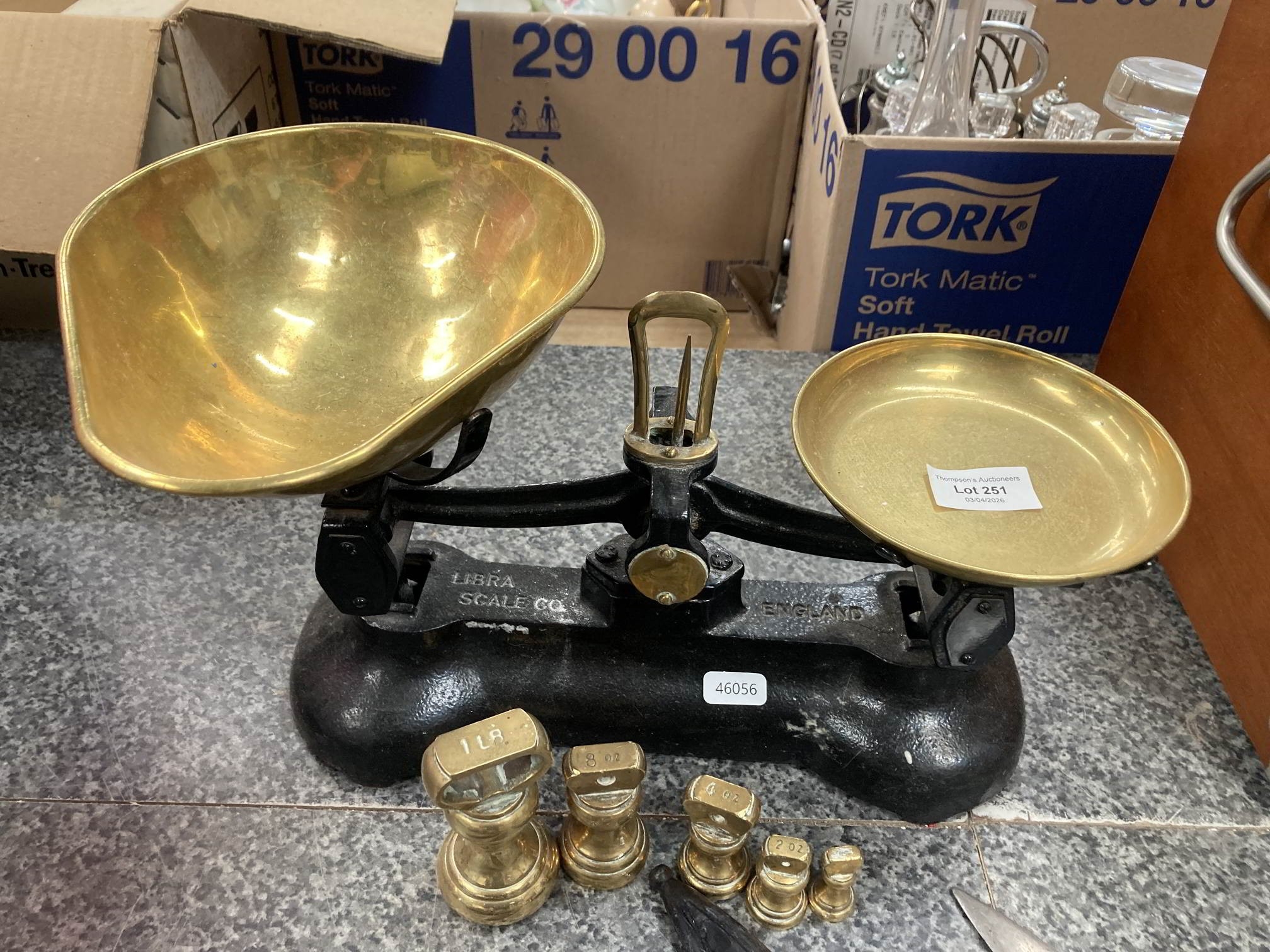 Libra Scale Co scales with 5 brass weights (1lb-1oz)