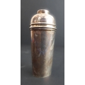 A small silver-plated Art Deco cocktail-stick case modelled as a cocktail shaker: the top opening to reveal six original sticks with cherry-style terminals, maker's mark to underside of PHV & Co. (10.5 cm high)