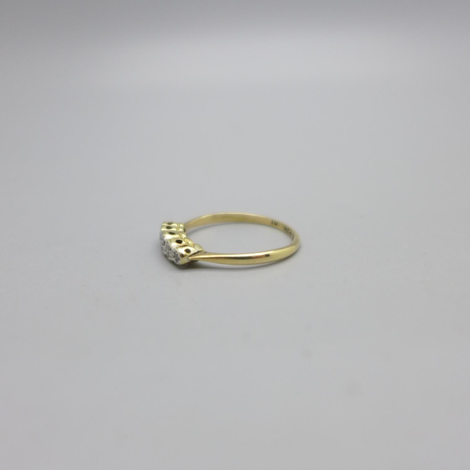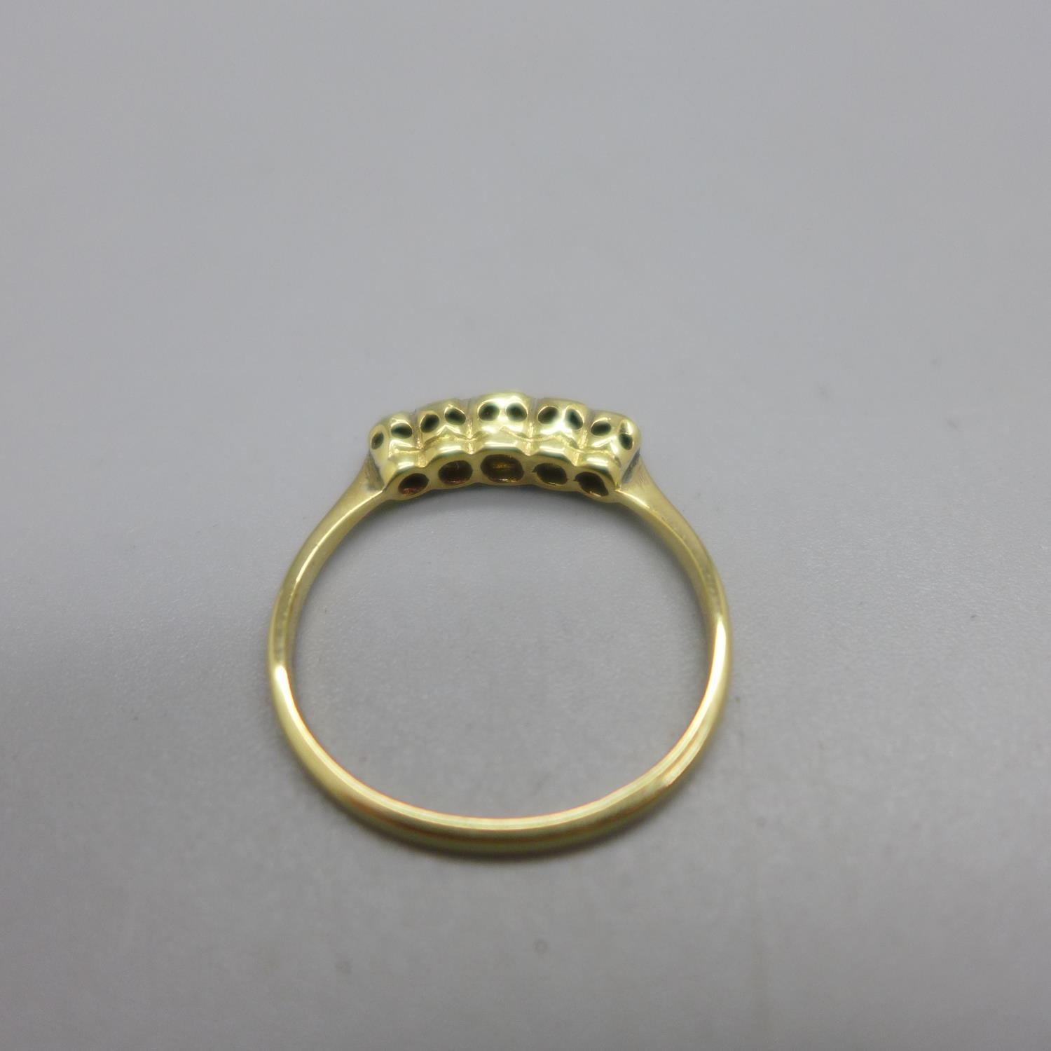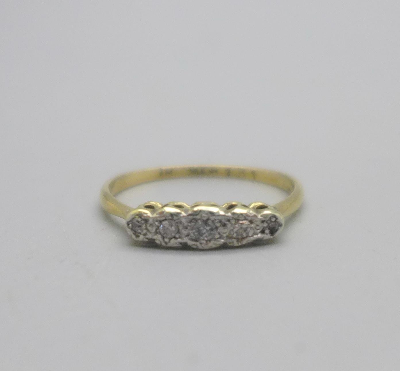 A vintage 18ct gold and five stone diamond ring, 1.8g, M