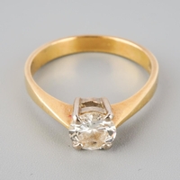 A diamond dress ring. The principal 'Crown Of Light' diamond, measuring approx 3.7mm diameter, to the single cut diamond cross over shoulders and plain polished band, inner band stamped 14k CS0.29 SS0.48, approx ring size O, approx gross weight 3.75 grams.