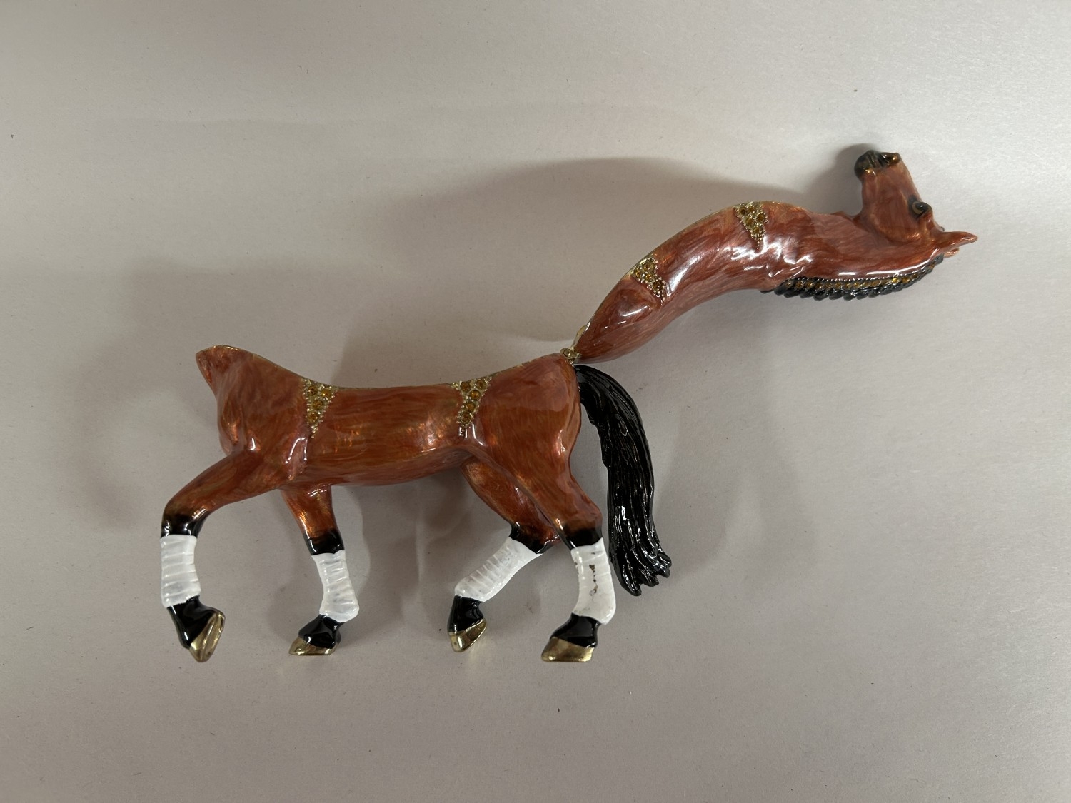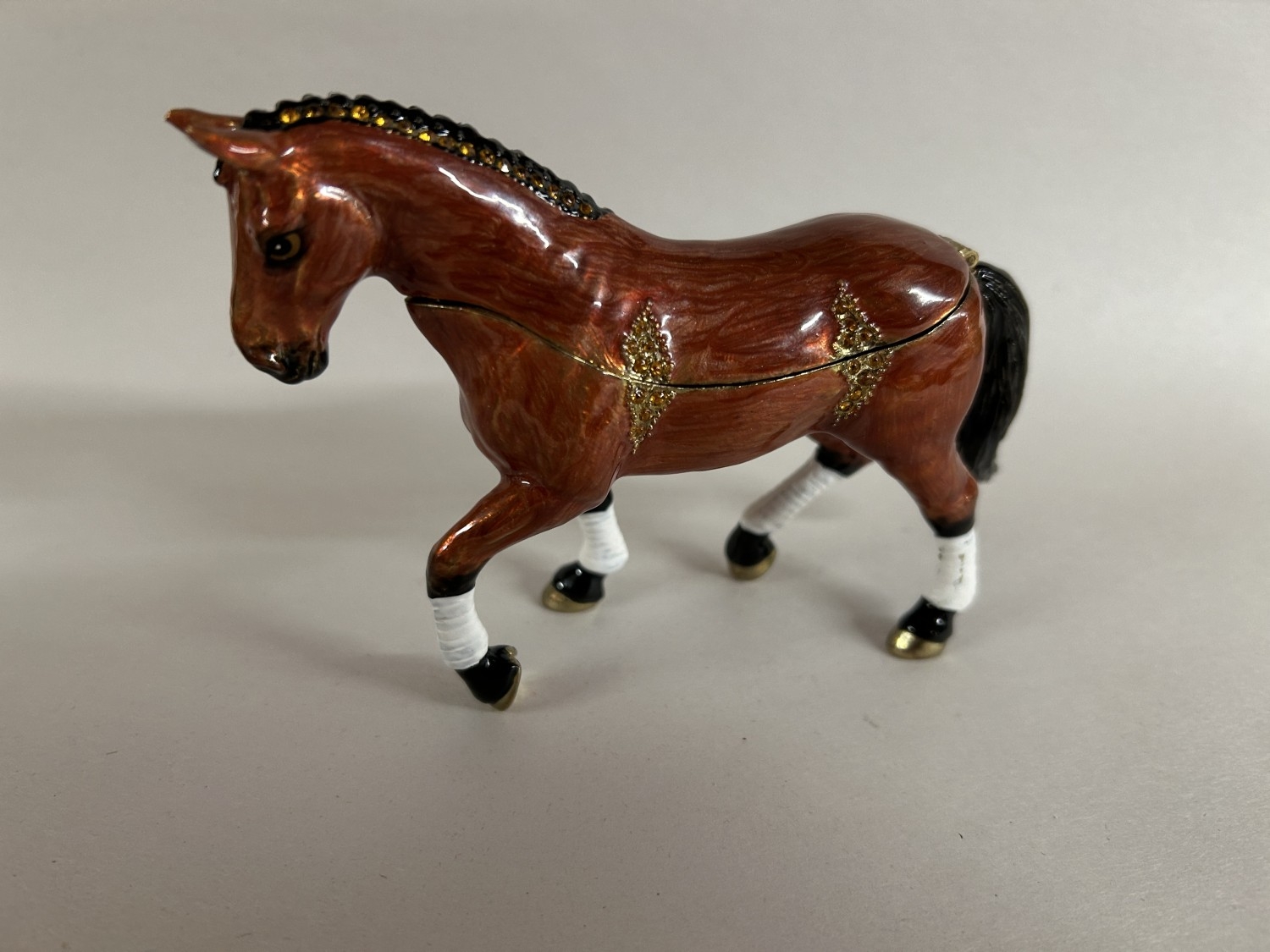 Horse Jewelled, Enameled & Hinged Lid Trinket Box