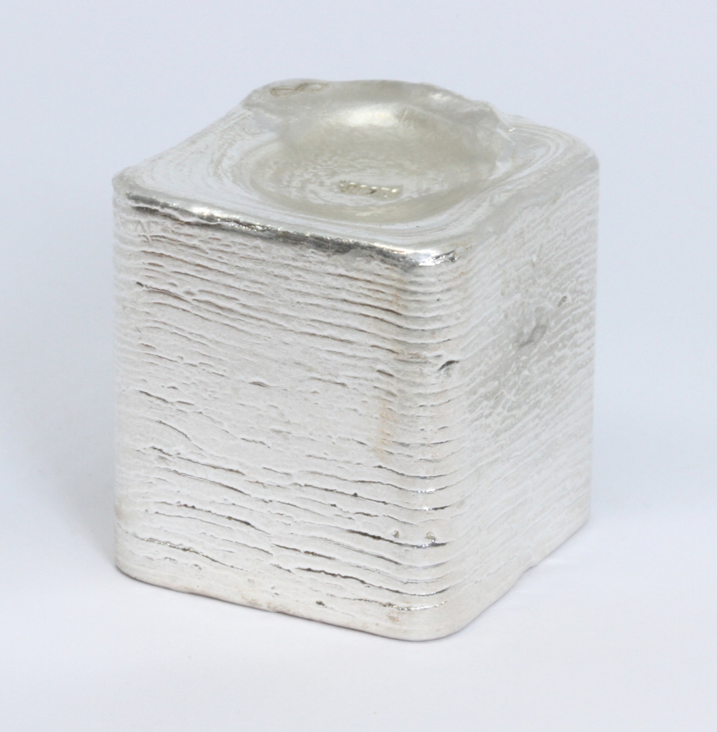 A cast white metal cube, marked '.999FS', weight 643.5g, 10% buyer's premium (inclusive of VAT), normal online bidding fees apply.