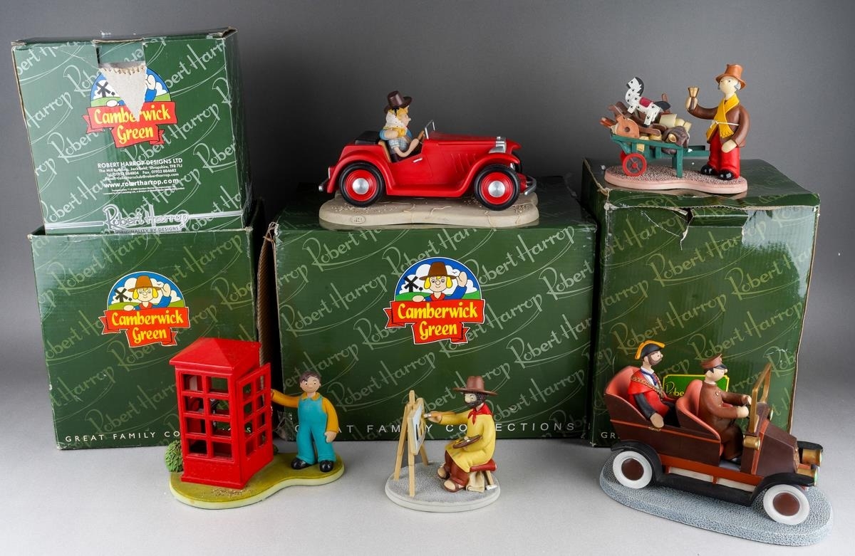 Robert Harrop - 5 boxed figures from The Camberwick Green Collection comprising Mollys car ( limited edition 600), Ringing for help, The artist - mayors birthday, The mayor and Philby in the mayors car and Raggy Dan & Cart, some boxes with water damage, all figures in good overall condition.