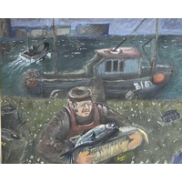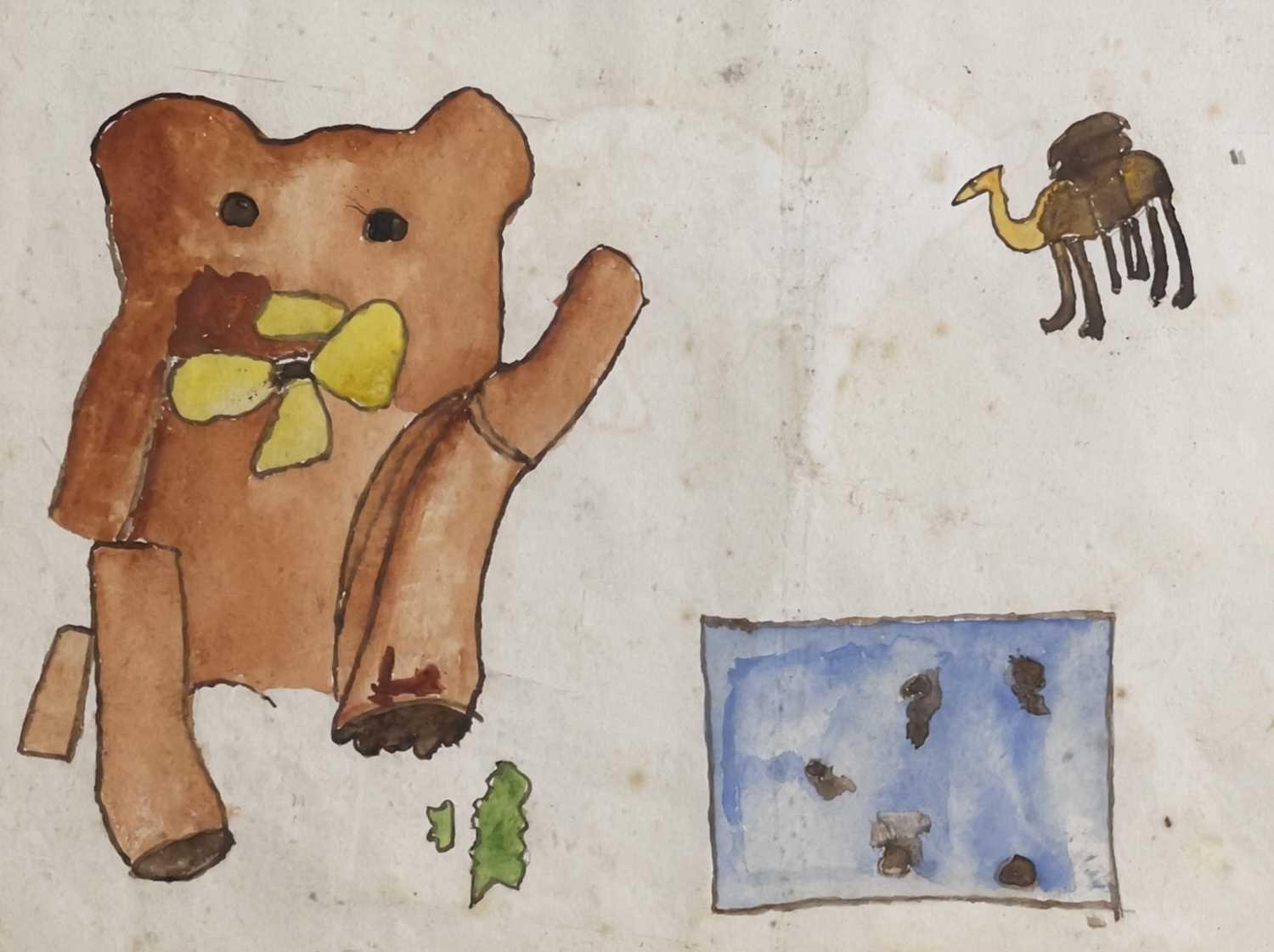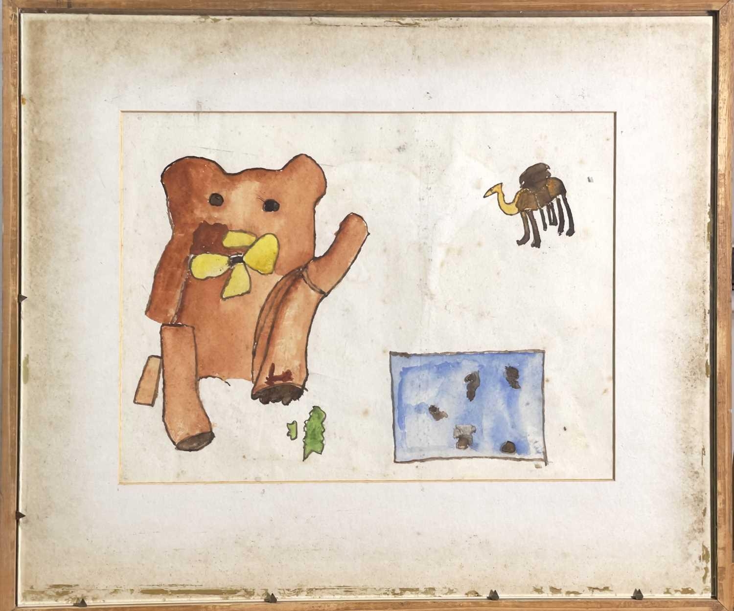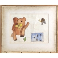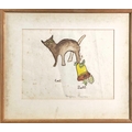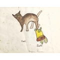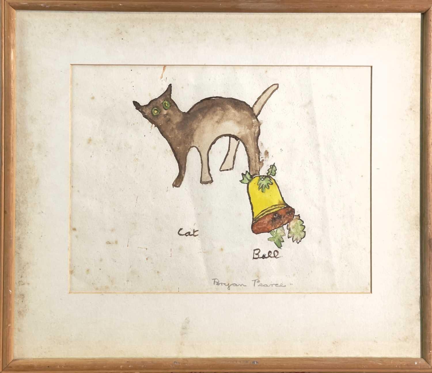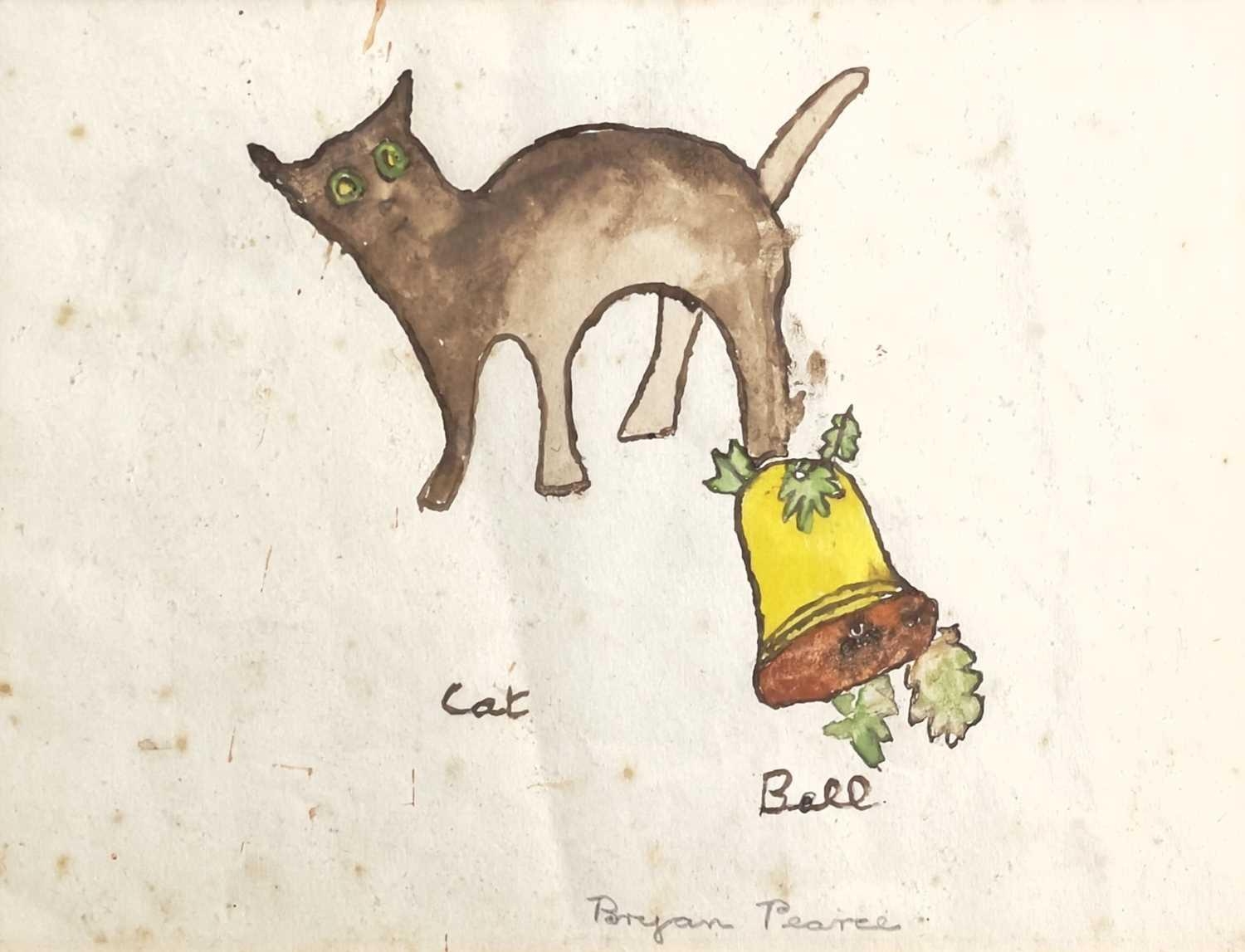 Bryan PEARCE (1929-2006) Cat and Bell Watercolour Signed 21x27cm To verso a watercolour with a teddy bear