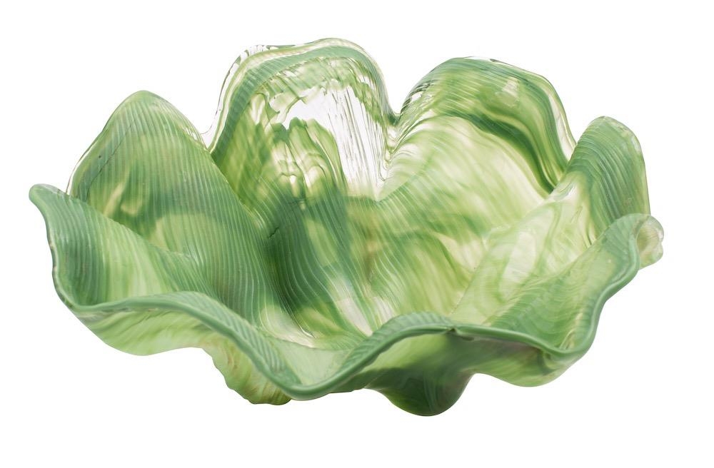 Toni Zuccheri for Venini 'Ninfee', a large mould blown bowl, the clear and green striated body in the form of a shell, with fold over rim, diamond point etched to the base, Venini Italia, 52cm wide.