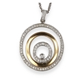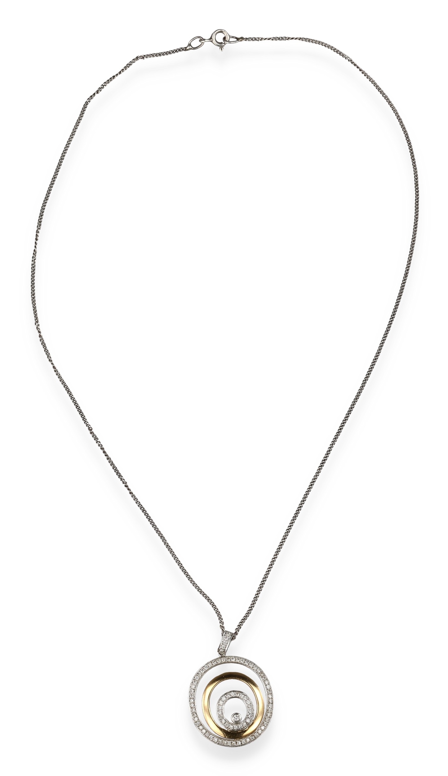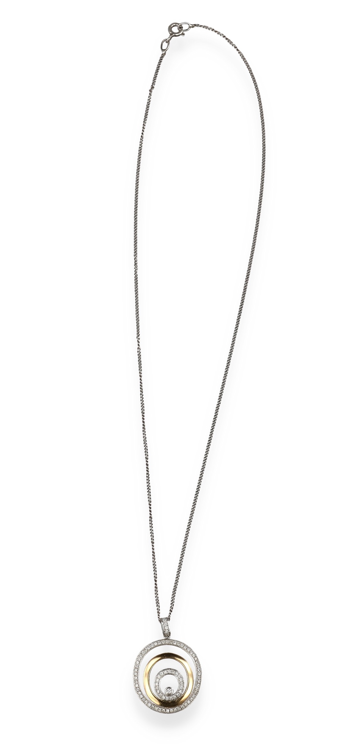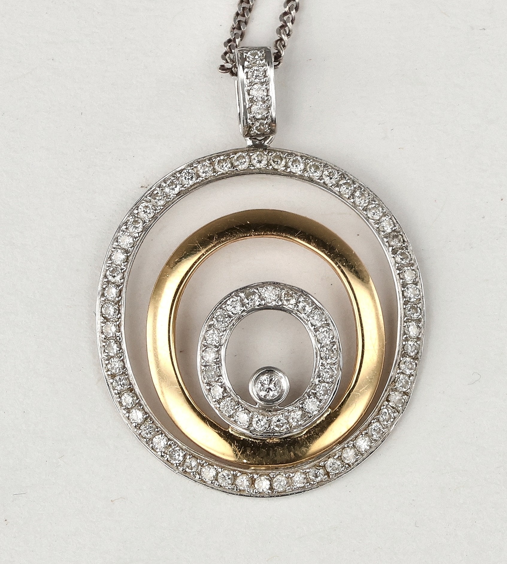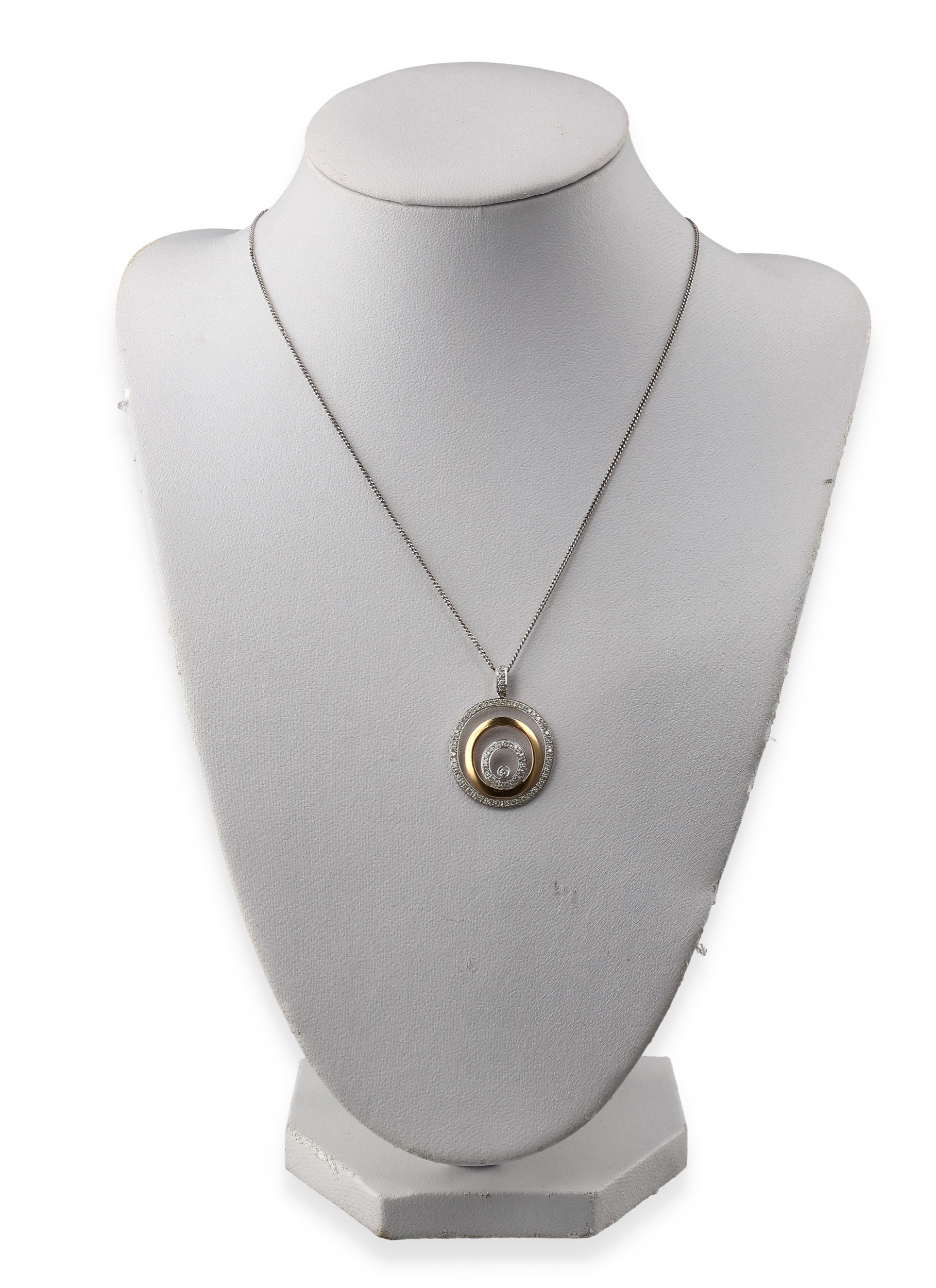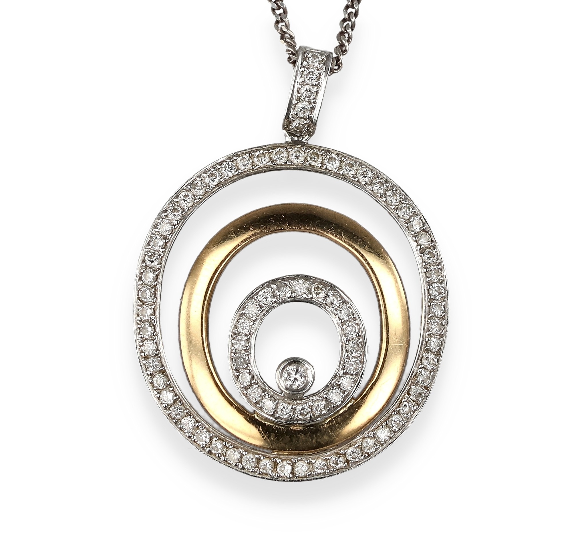 AN 18CT YELLOW AND WHITE GOLD PENDANT AND NECKLACE WITH 46 POINTS OF DIAMONDS