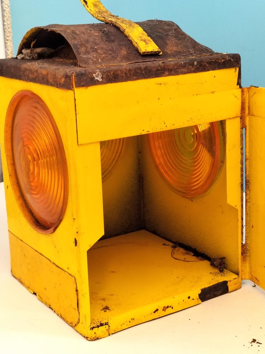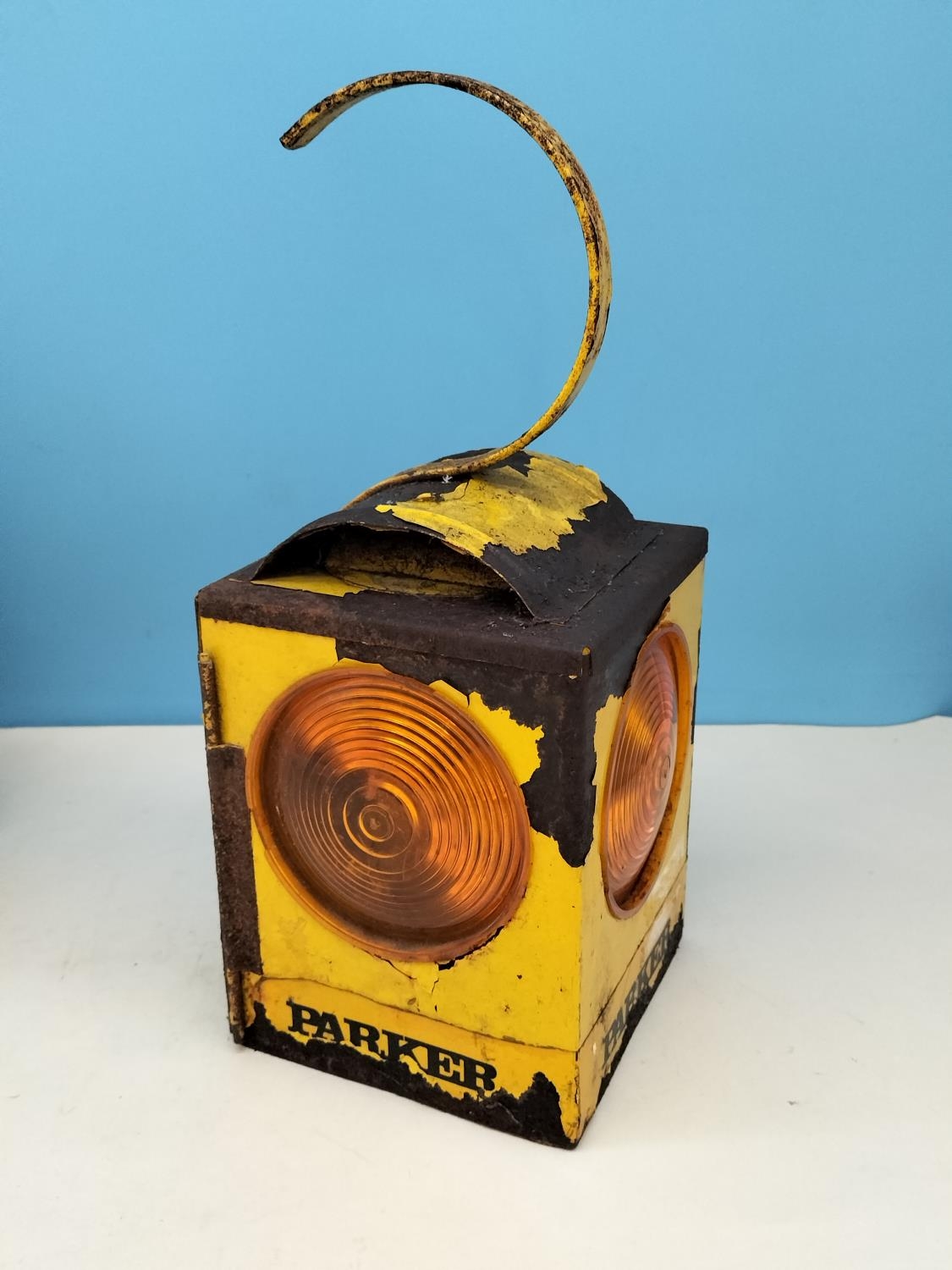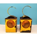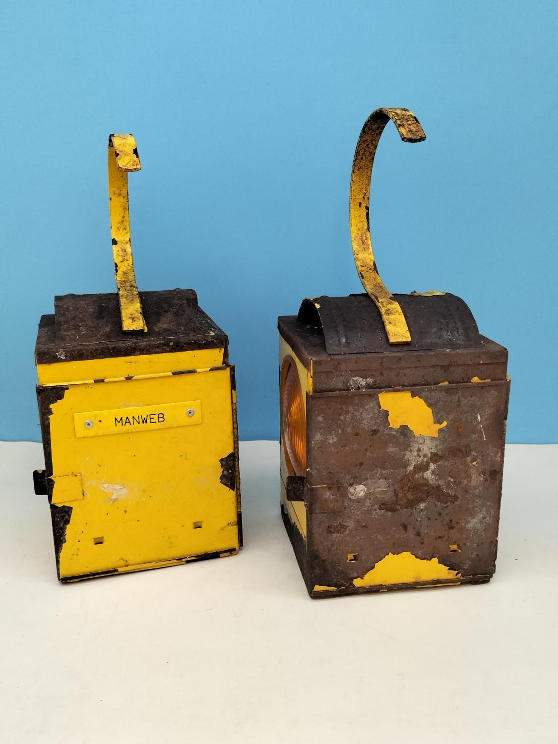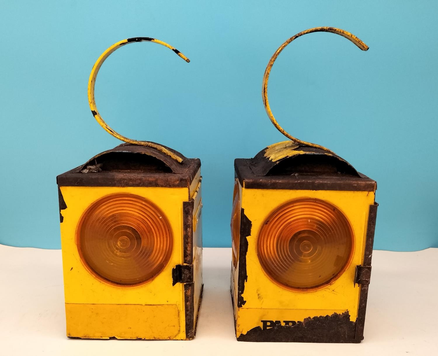 Pair of Road Safety Lamps. 34cm High, 14.5cm x 14.5cm.