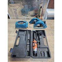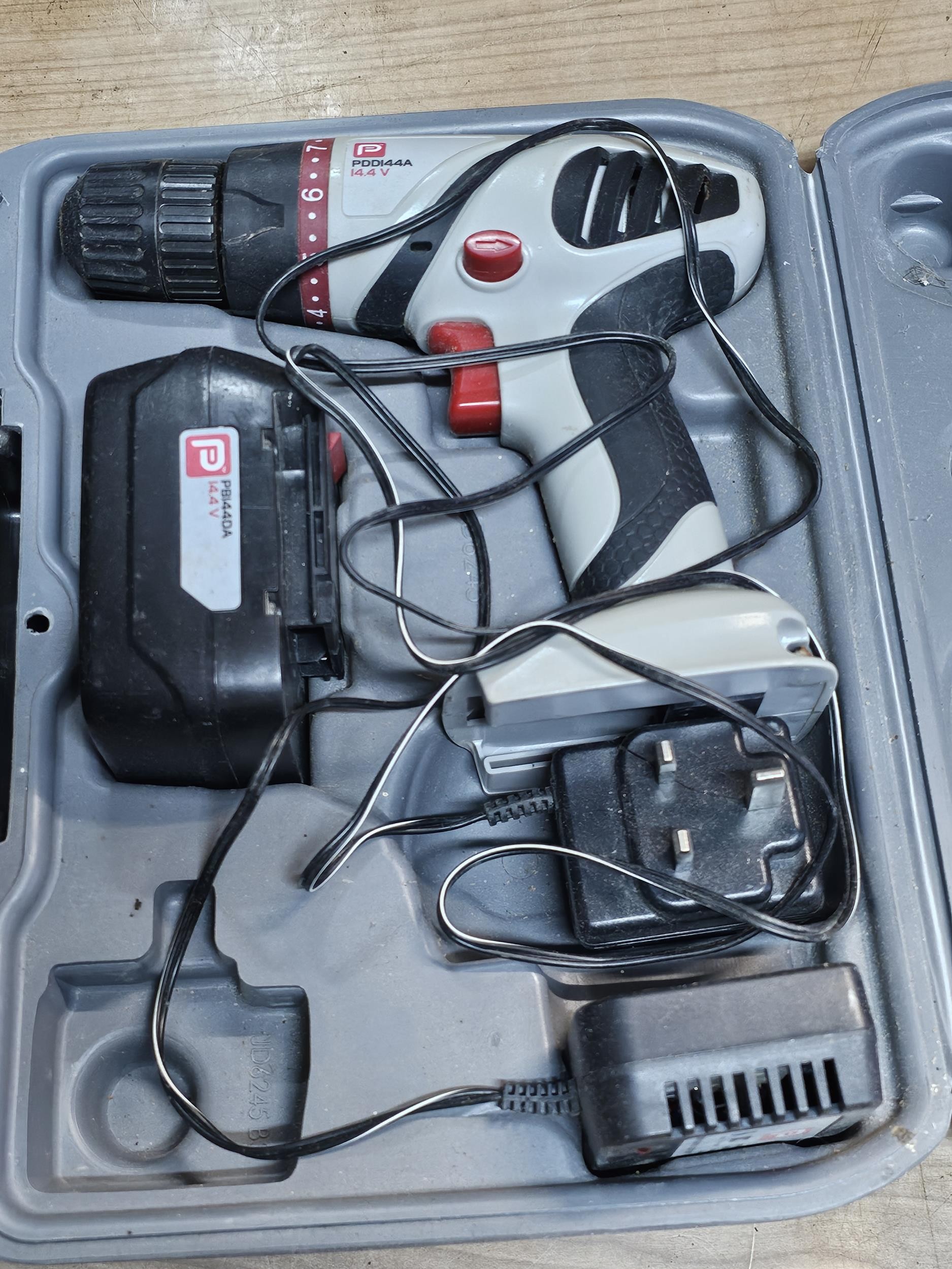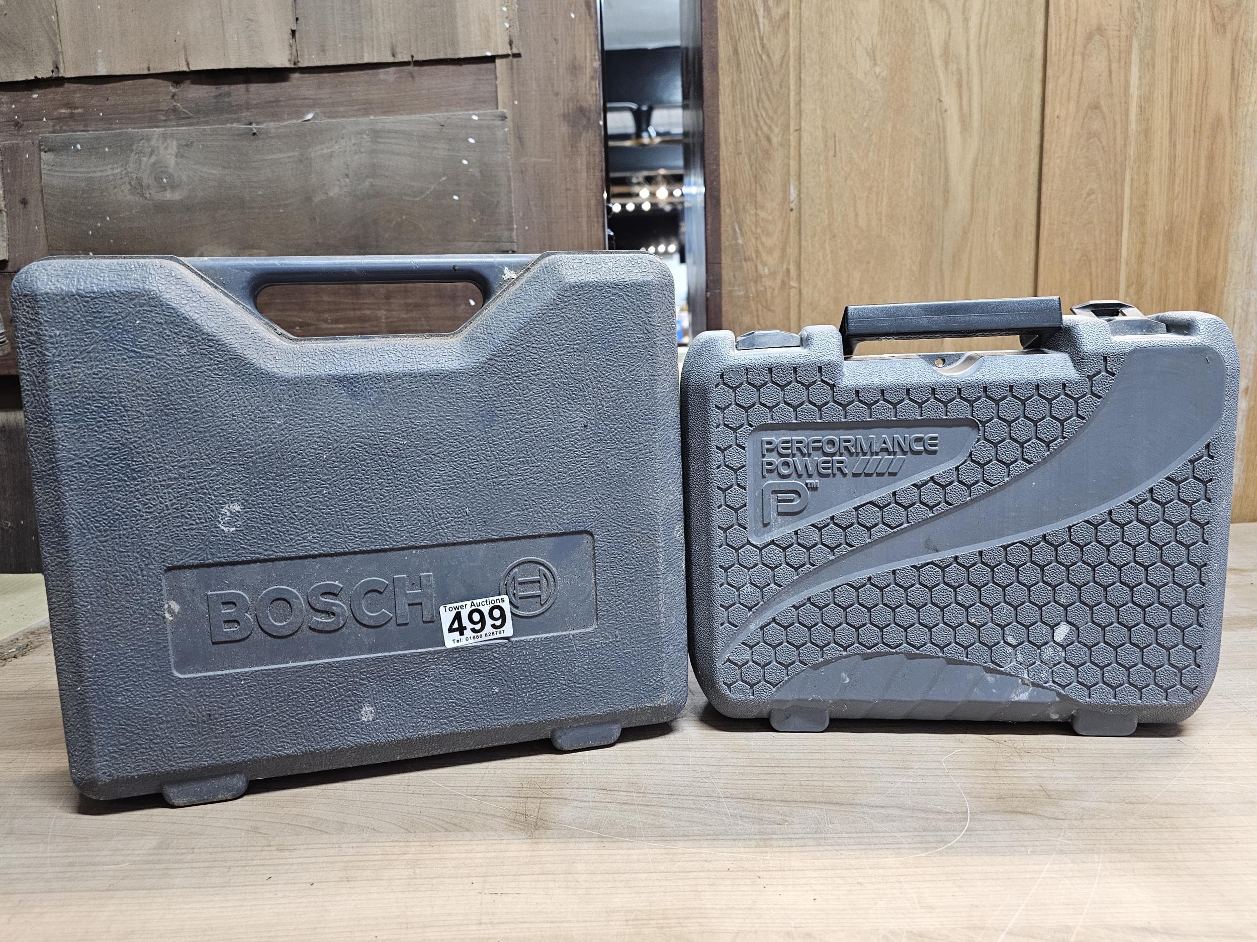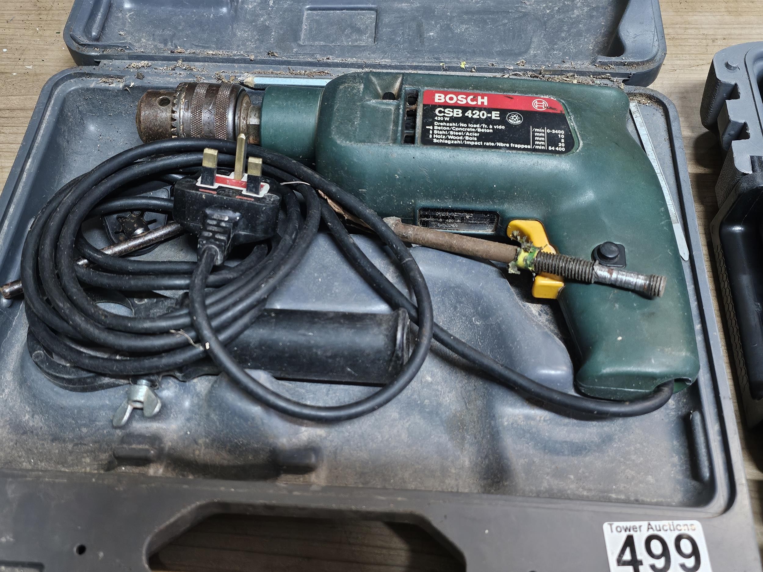 2x cased electric power tools to include a Bosch CSB 420-E 420W Hammer drill along with Performance Power PDD144A 14.4V drill complete with battery and charger.