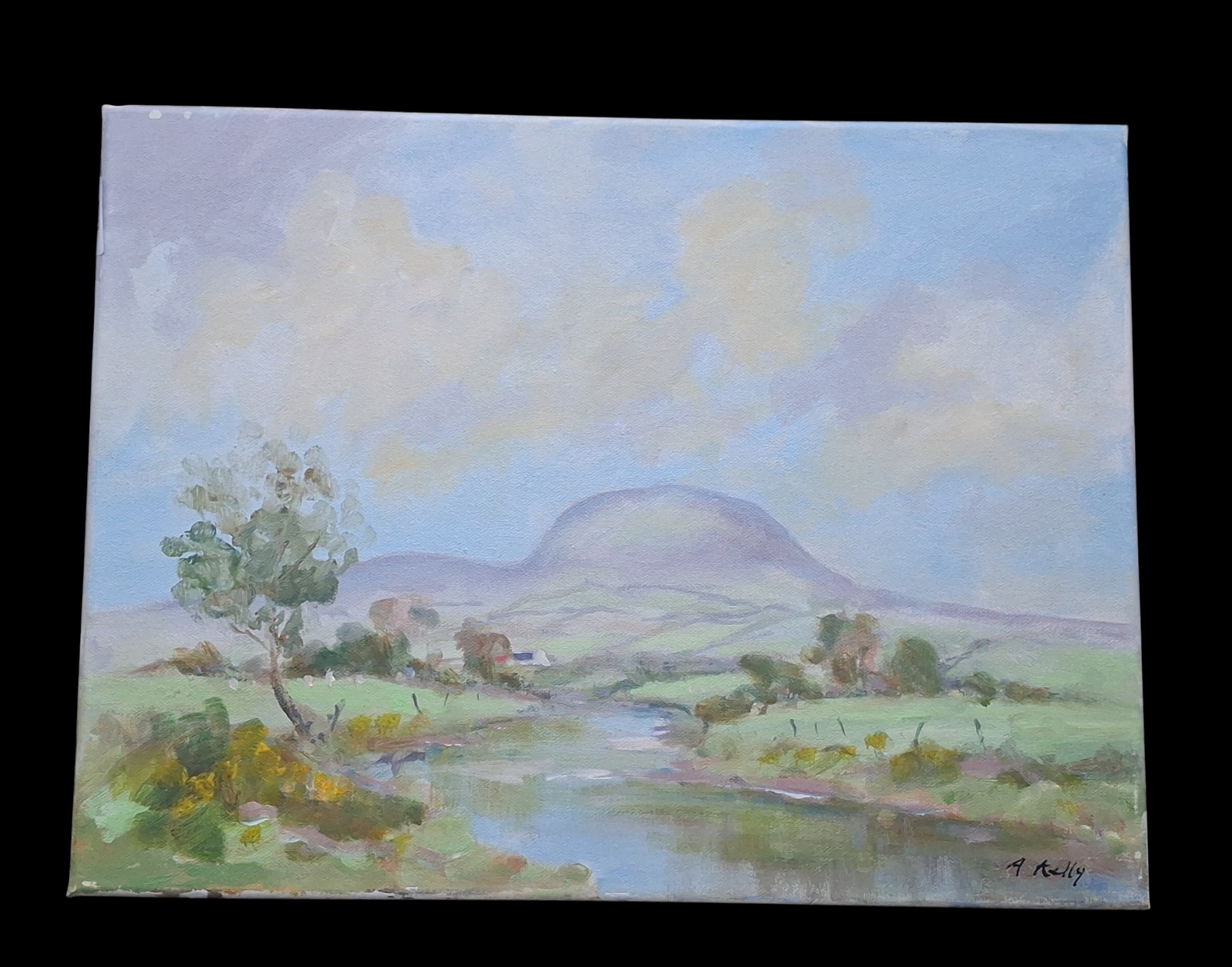 AN ORIGINAL PAINTING OF SLEMISH MOUNTAIN IN ALL ITS GLORY BY ARTIST ANNE KELLY MEASURES 12 x16"