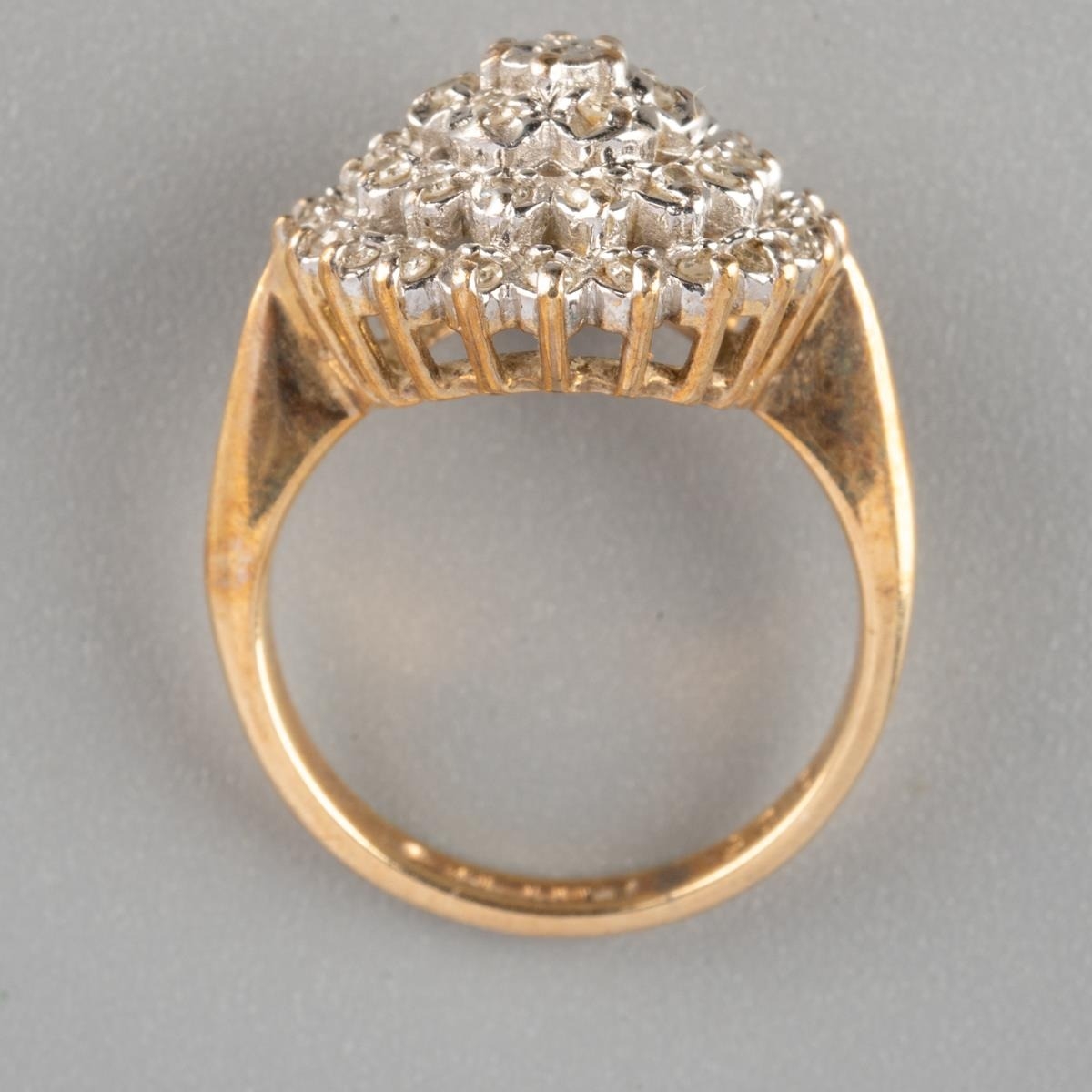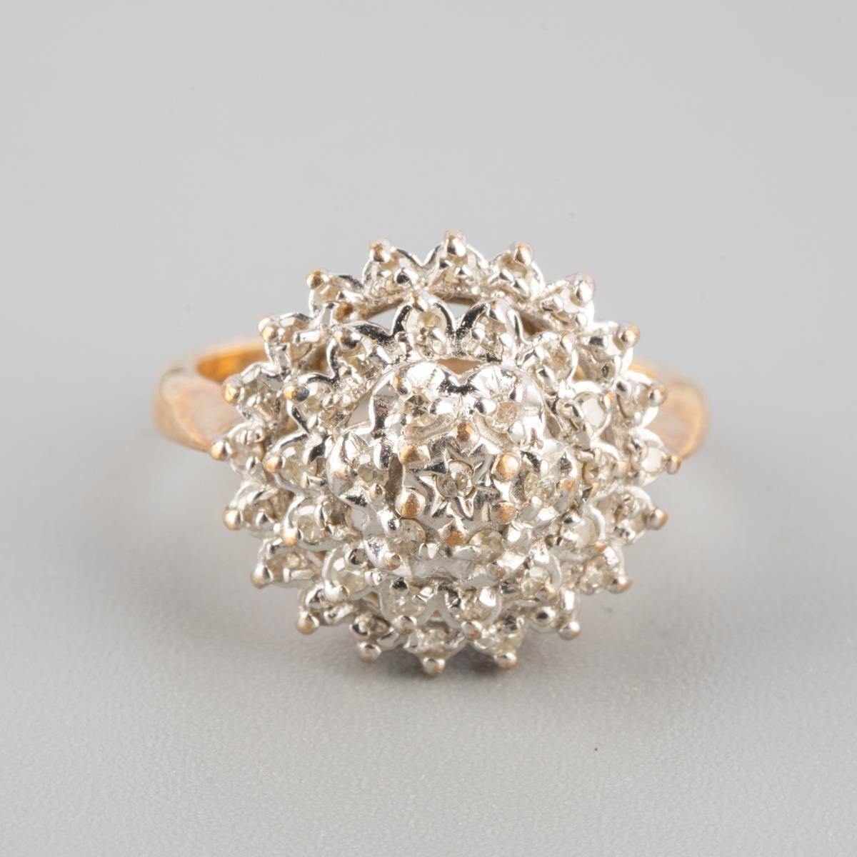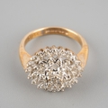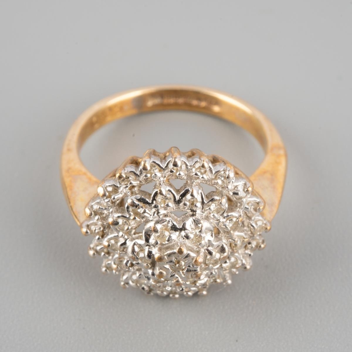 A 9ct gold diamond cluster ring. Hallmarked 9ct gold, stamped 0.25, approx ring size G 1/2, approx gross weight 3.4 grams.