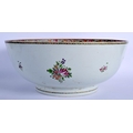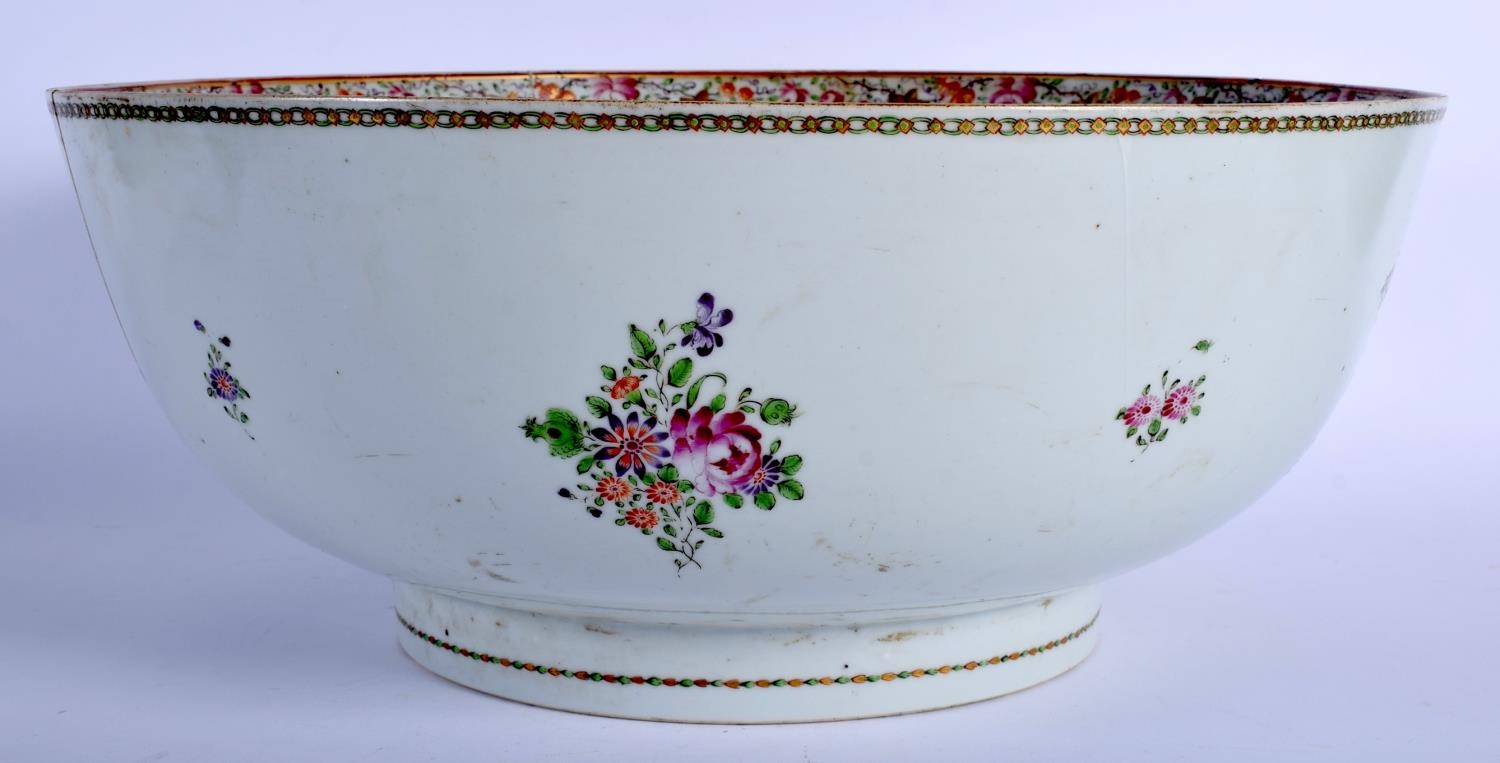 A LARGE 18TH CENTURY CHINESE EXPORT FAMILLE ROSE PUNCH BOWL Qianlong, painted with a floral rim. 33 cm x 17 cm.