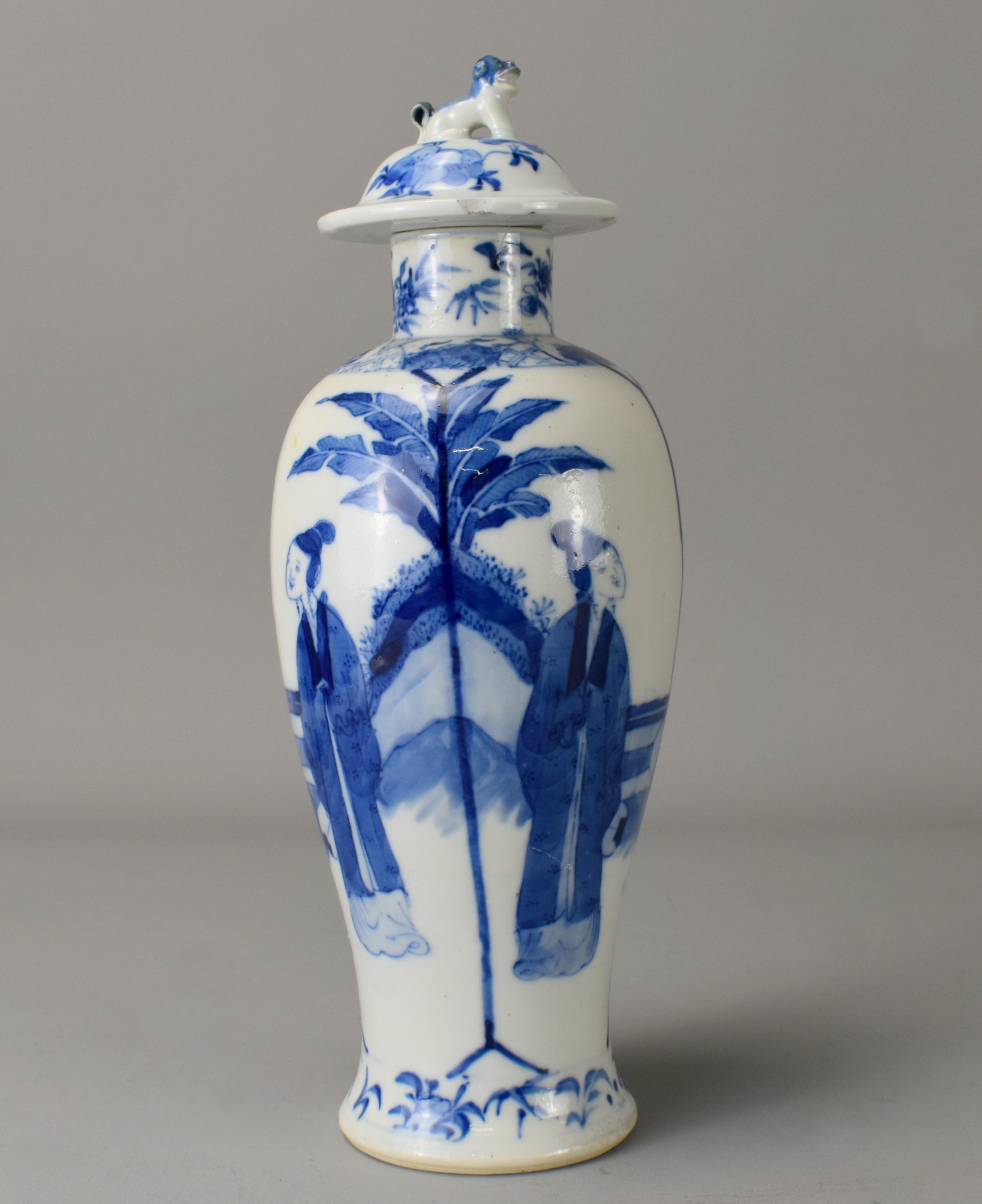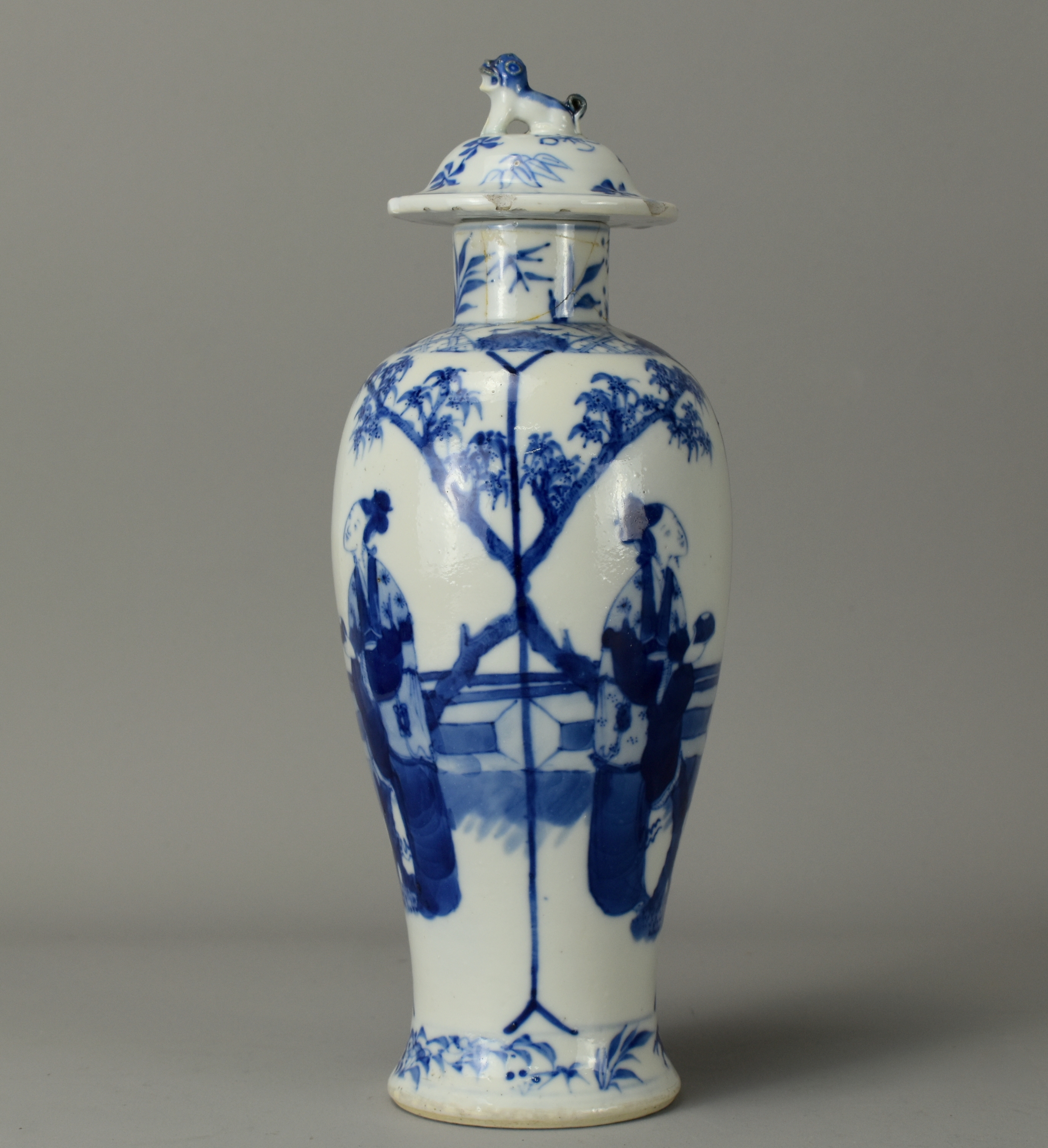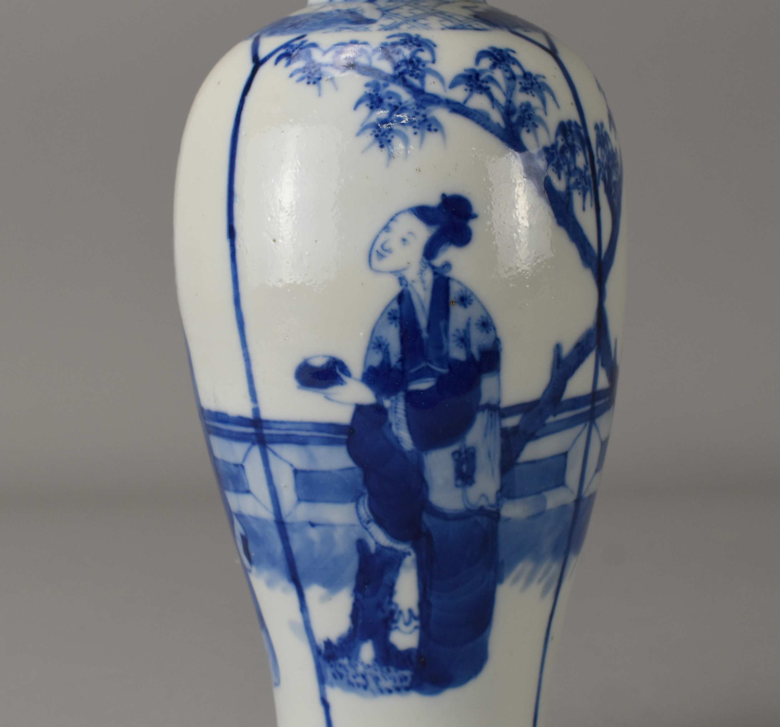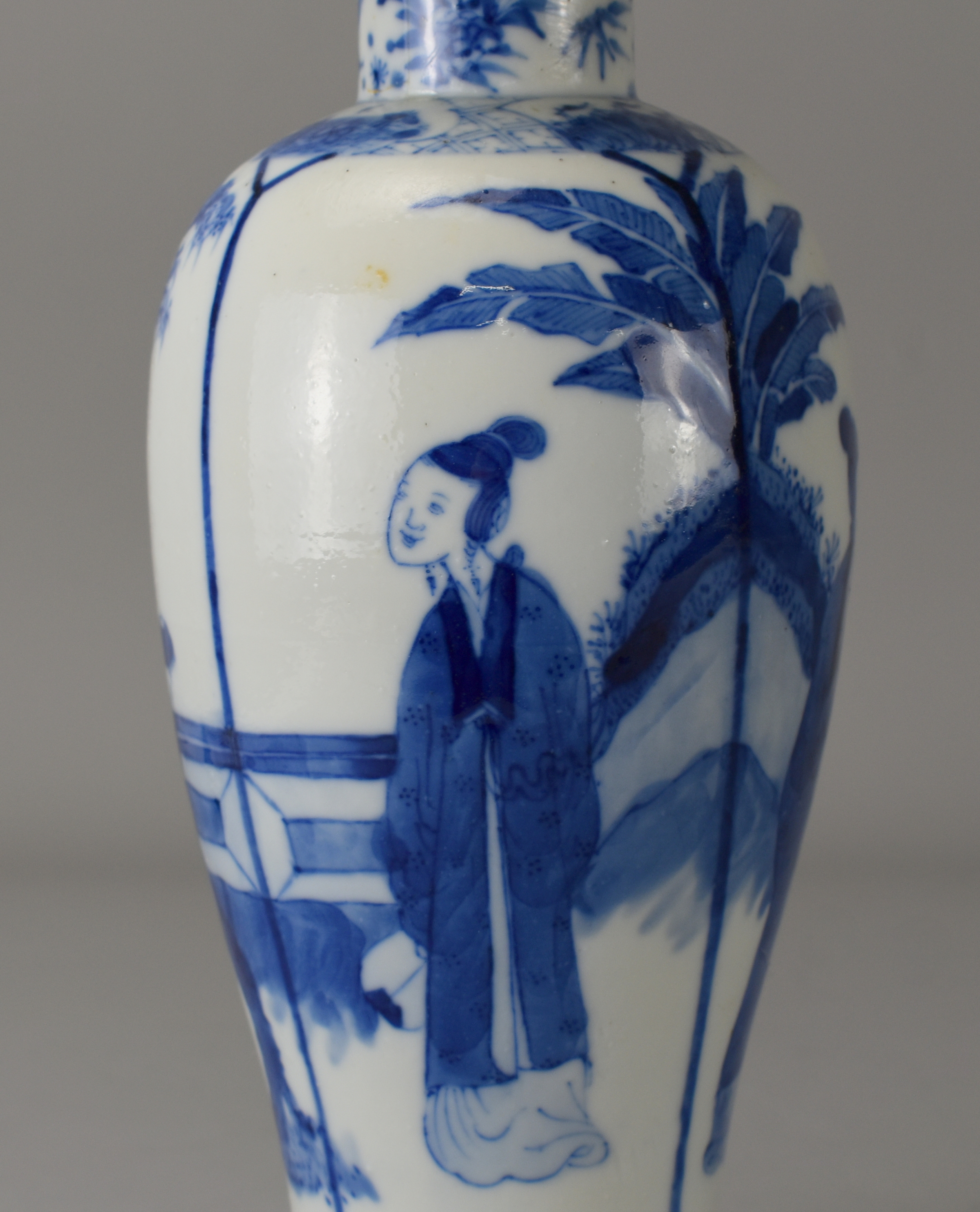 Of baluster form, painted with female figures below trees. In the Kangxi taste.