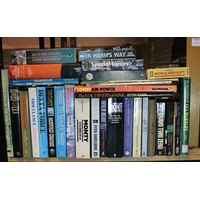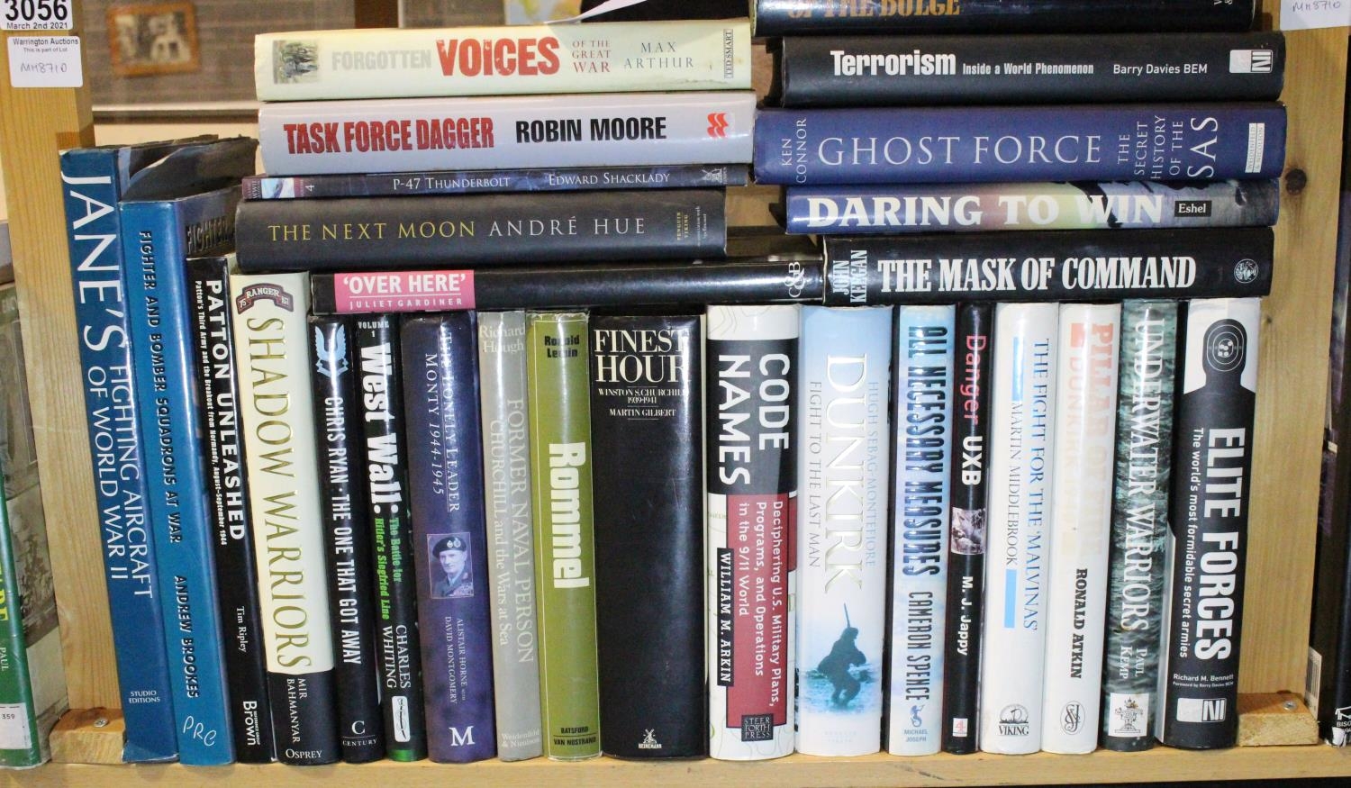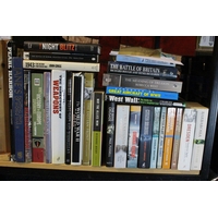 Shelf of military and military history books. Not available for in-house P&P, contact Paul O'Hea at Mailboxes on 01925 659133