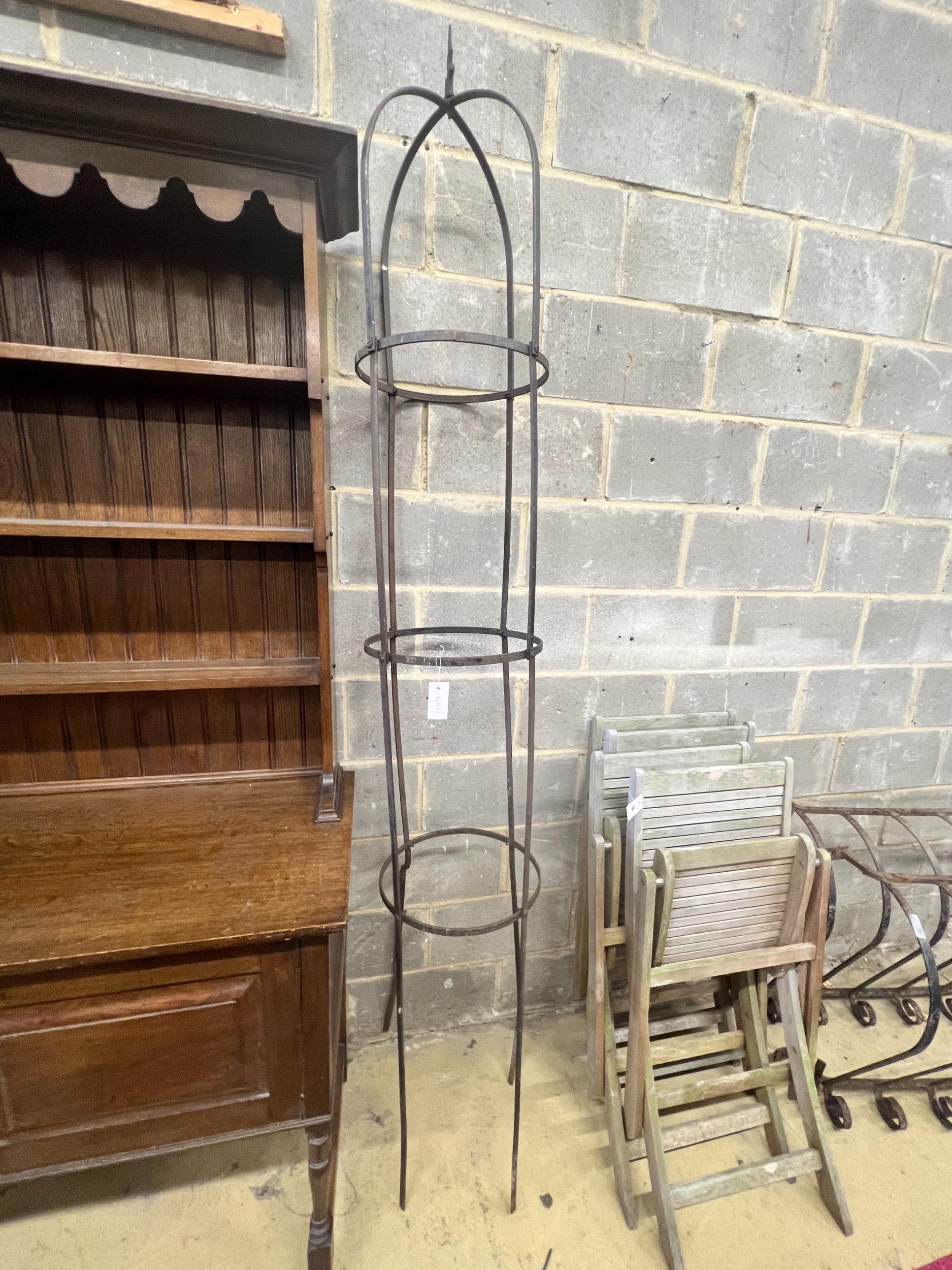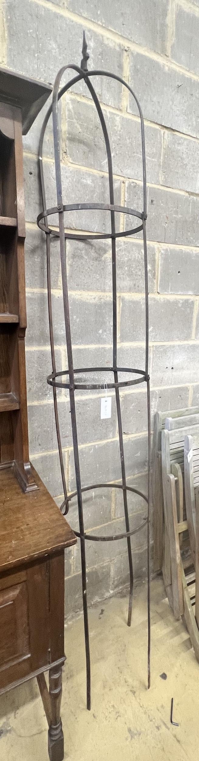 A circular wrought iron garden growing frame, height 246cm