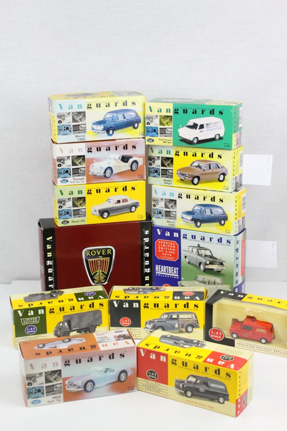 13 Boxed Lledo Vanguards diecast models featuring Heartbeat set HB1002 and Rover set RC1003 all vg