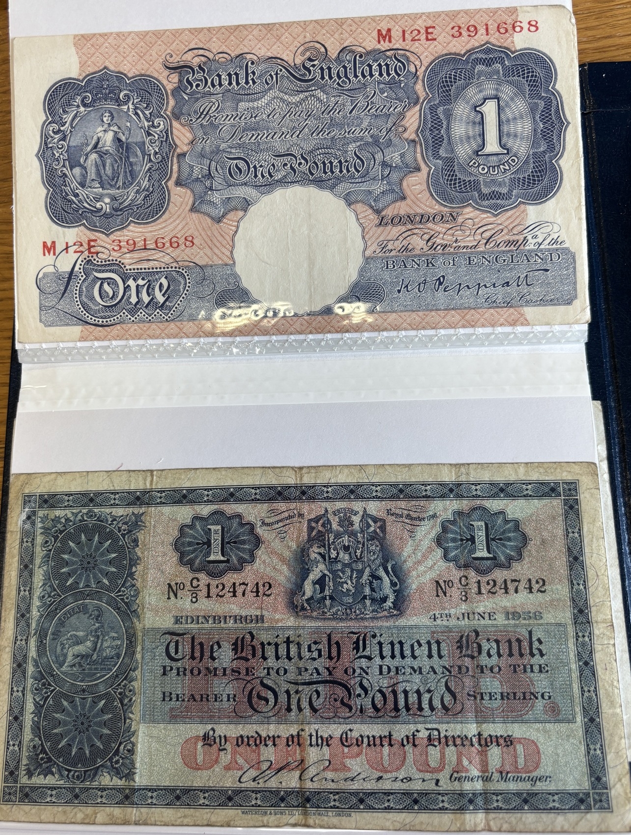 Collection of notes in two albums and loose, generally extremely fine with some better, including ranges of British Armed Forces, England with Peppiatt £1 M12E, Japanese Government, North Korea, Scotland, Yugoslavia, etc. Qty approx 100+. (½B)