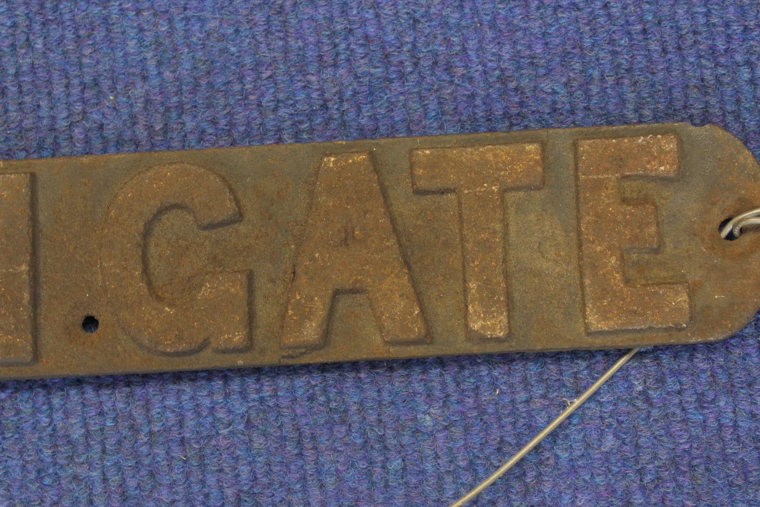 Early 20th Century cast iron "Shut & Fasten Gate" sign, probably railway related.
