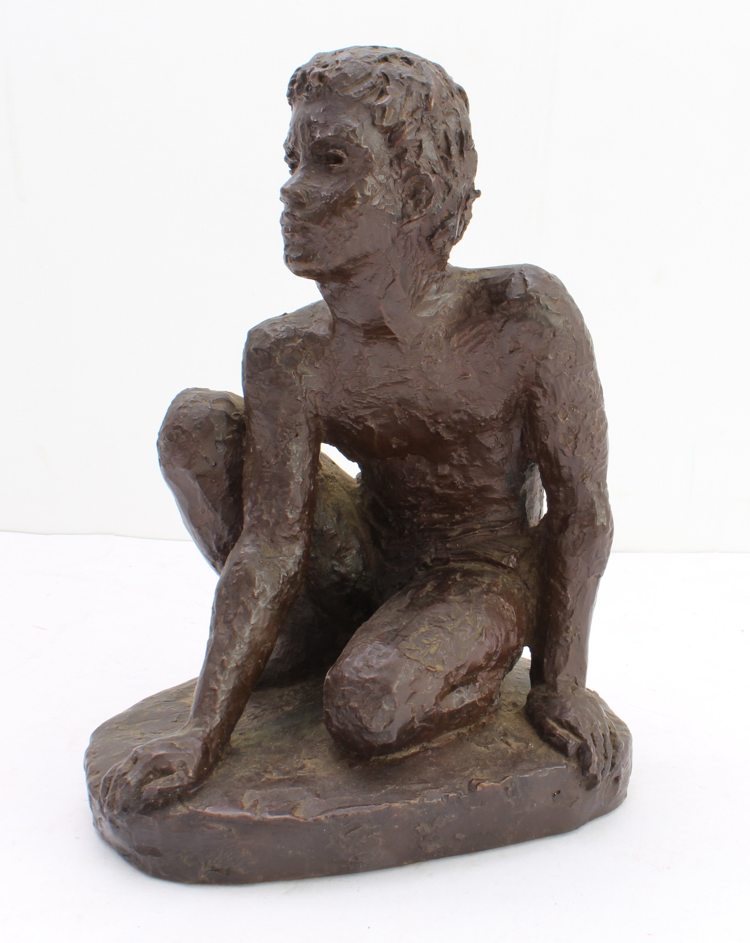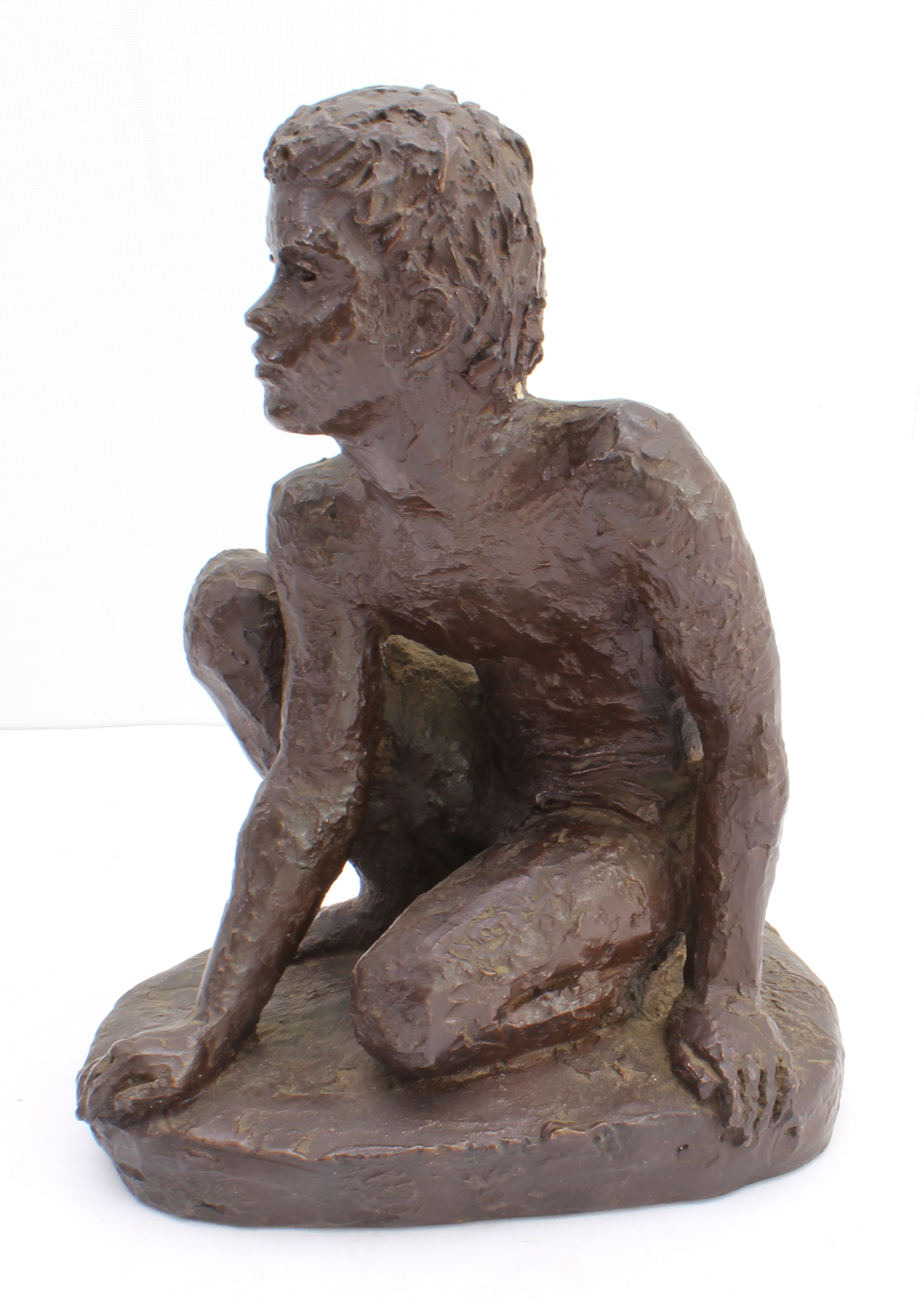 KARIN JONZEN (1914-1998): 'Young Boy Seated', cold-cast resin, monogrammed 'KJ', Heredities Ltd felt to underside (17.5 cm high)