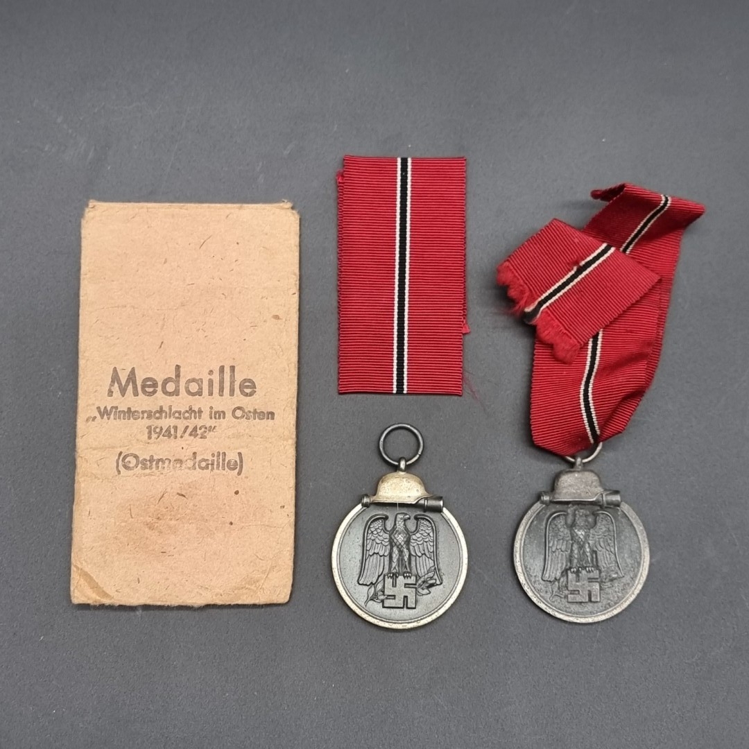 Medals: two WWII German Eastern Front (Winter Battle in the East 1941/42) Medals, one in original issue envelope.