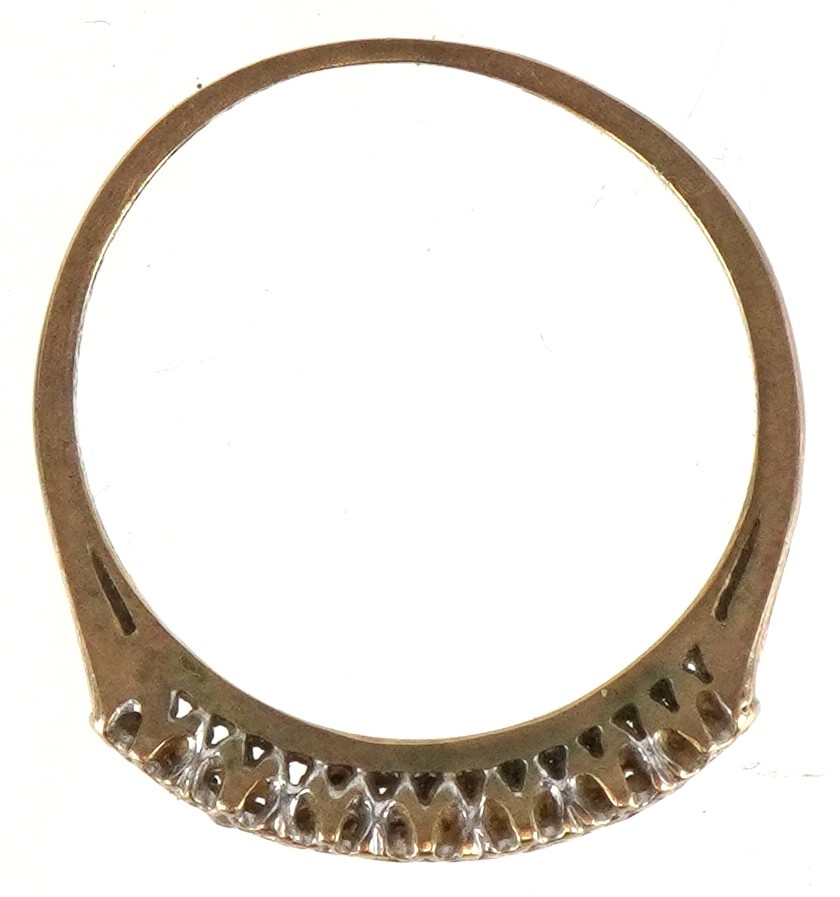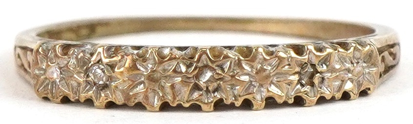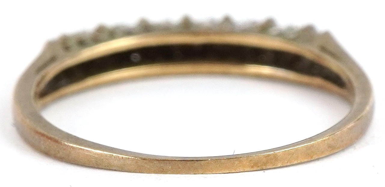 A 9ct gold diamond half eternity ring, size K, 1.1g.