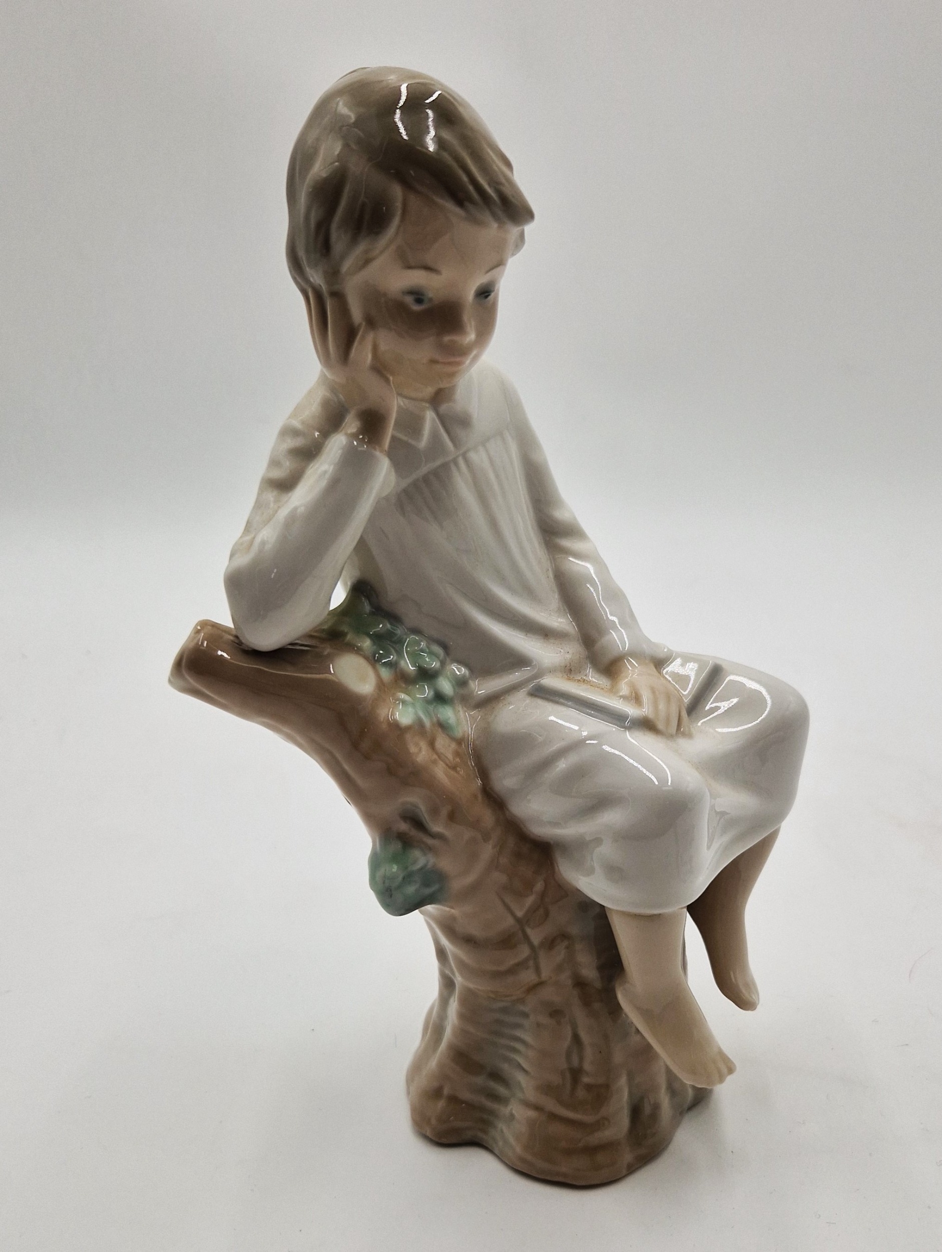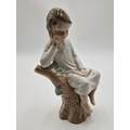 LLADRO PORCELAIN Large 21cm CHARACTER FIGURINE OF A BOY SITTING ON A TREE TRUNK. "THINKER LITTLE BOY" (Model No 4876) 1974/94Modelled By Jose Roig (Original Box)