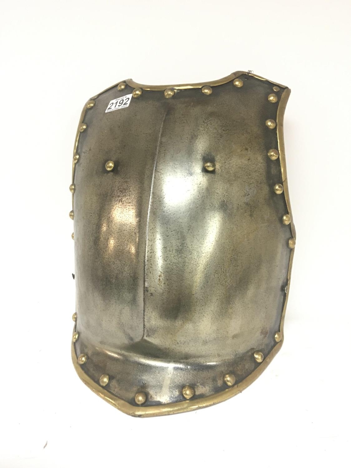 An antique steel and brass breast plate.