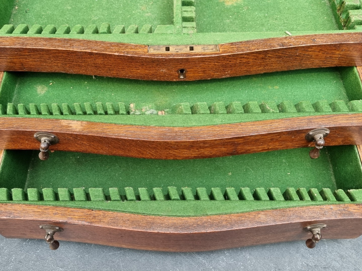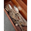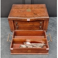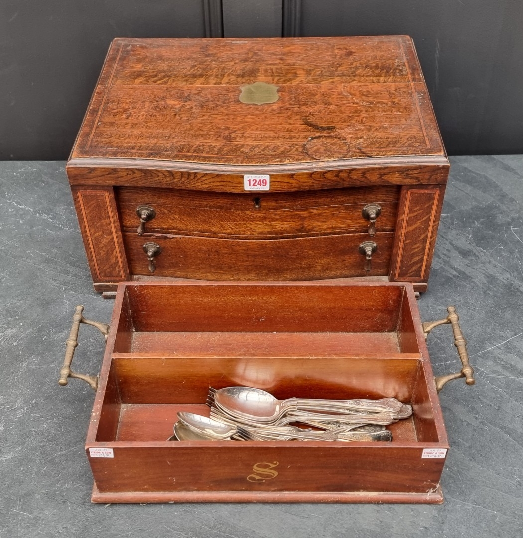 An Edwardian mahogany cutlery tray; together with another early 20th century oak cutlery box, 47cm wide; and a small quantity of electroplated Kings pattern flatware.