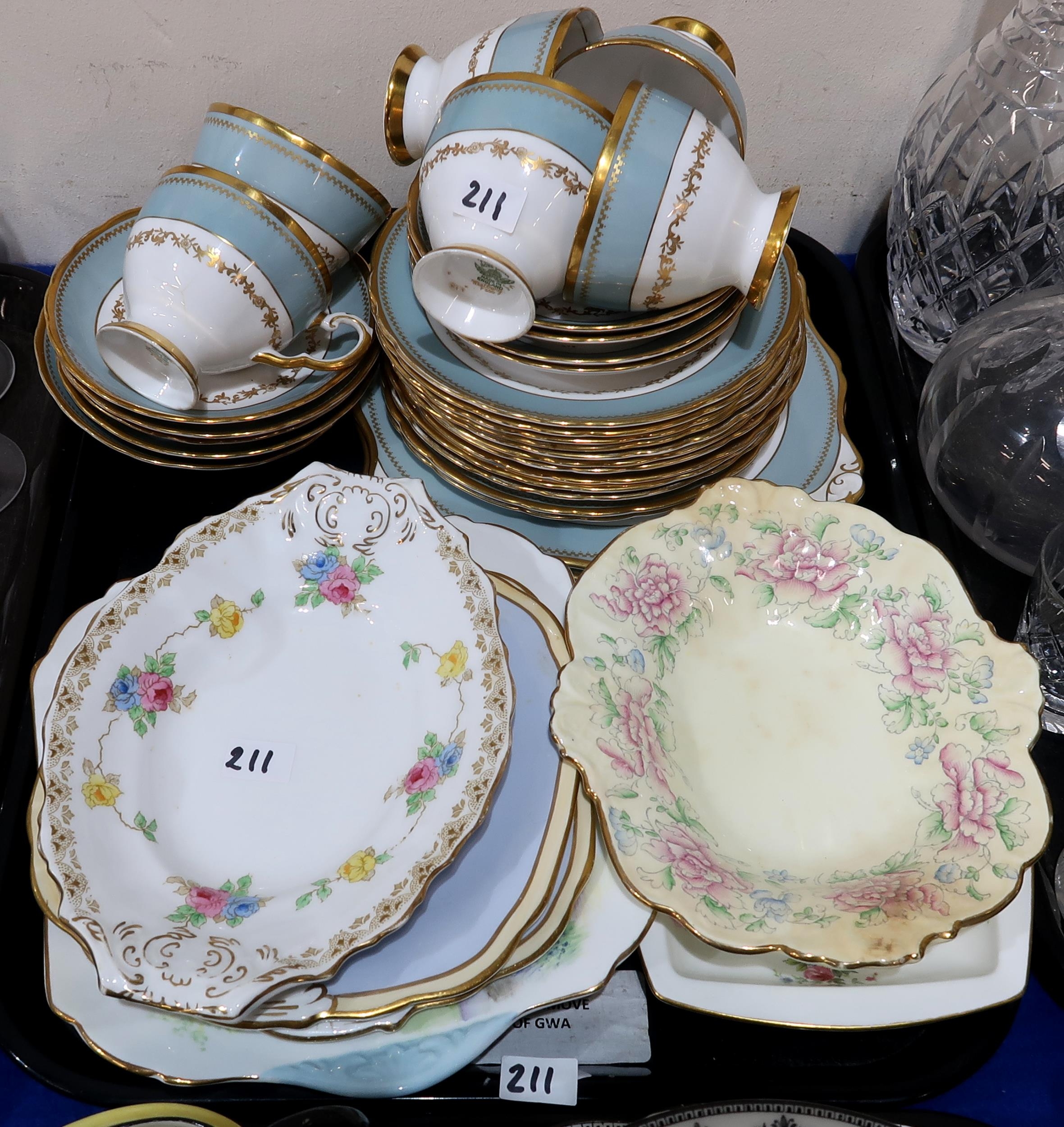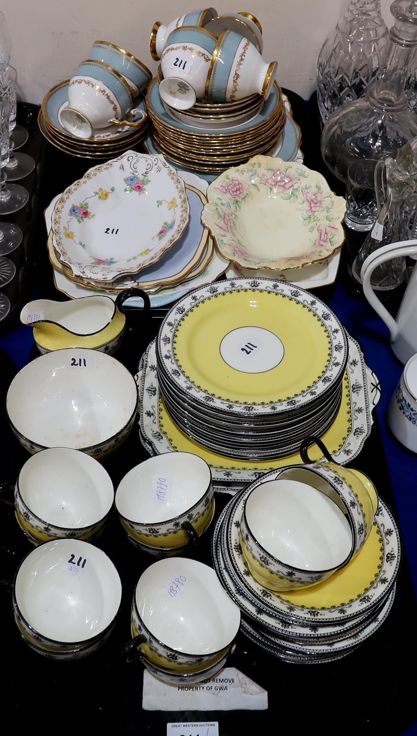 An Aynsley teaset, the yellow ground with black lace decoration, pattern number 3268, together with a Tuscan Westbury pattern teaset and assorted serving dishes and plates