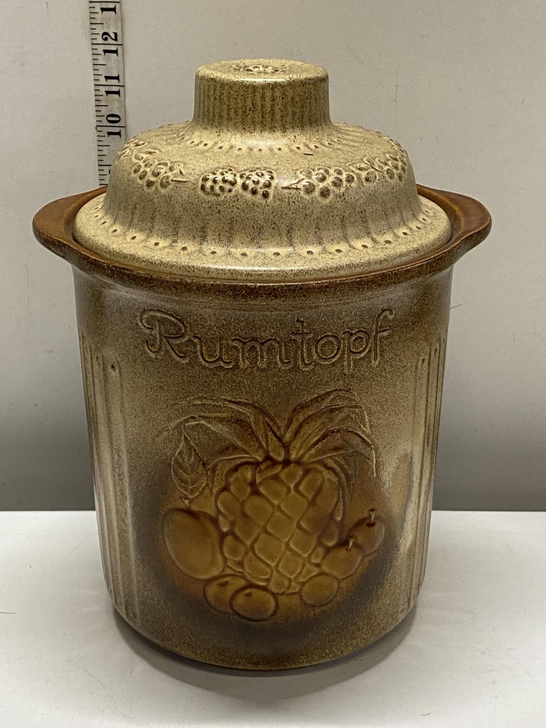 A vintage Rumtopf lidded biscuit barrel h31cm, shipping unavailable