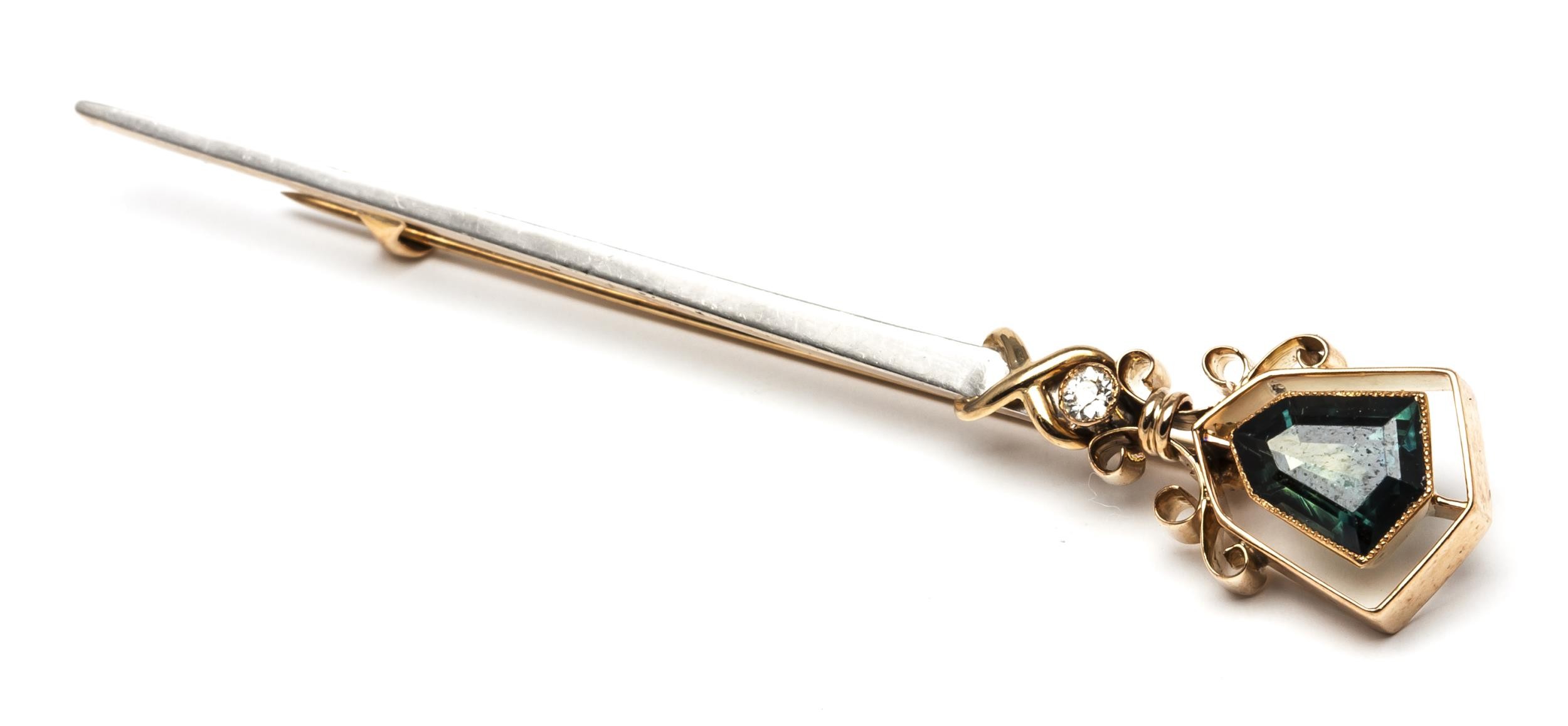 A GEMSET PIN BROOCH