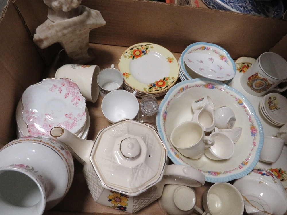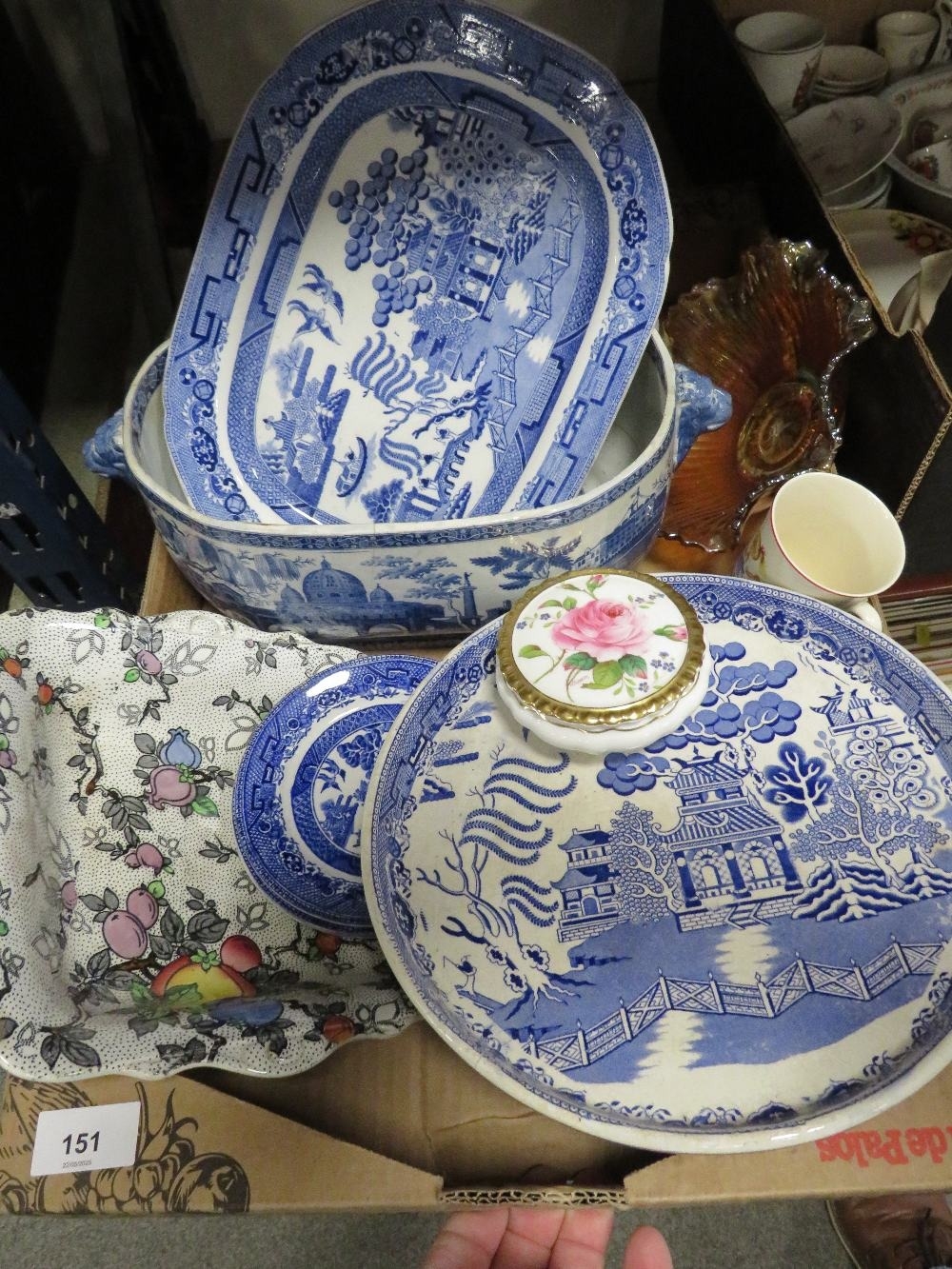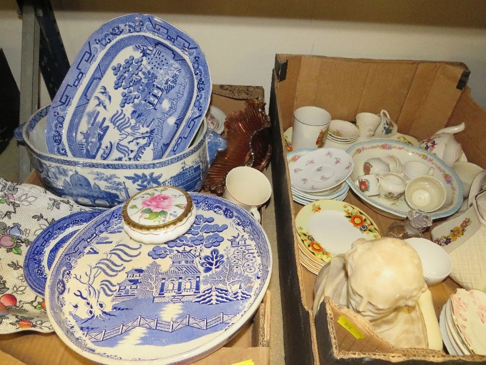 Two trays of vintage ceramics to include blue/white examples