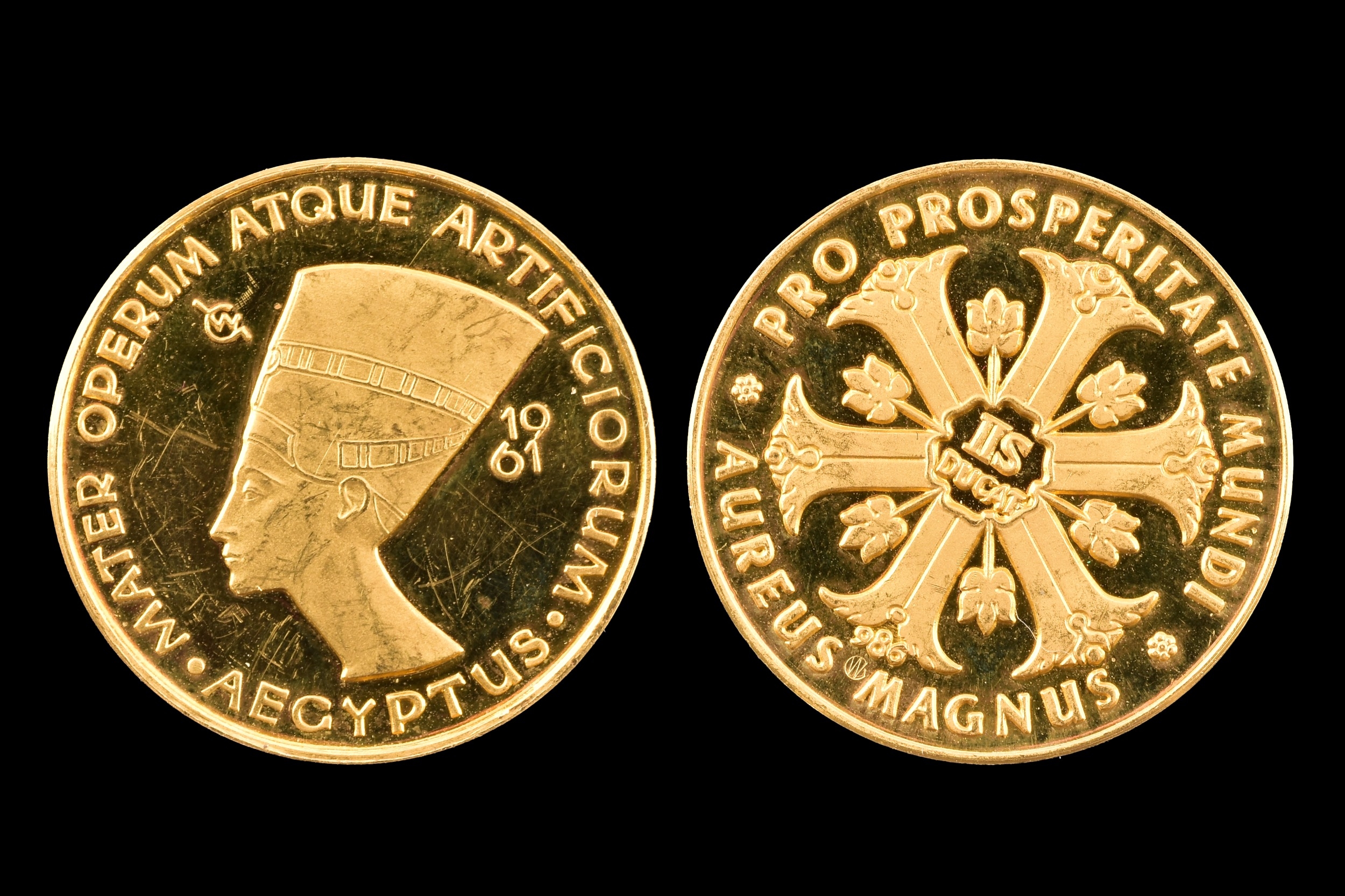 A 1961 Egypt Aureus Magnus 1 Sukat gold medal.