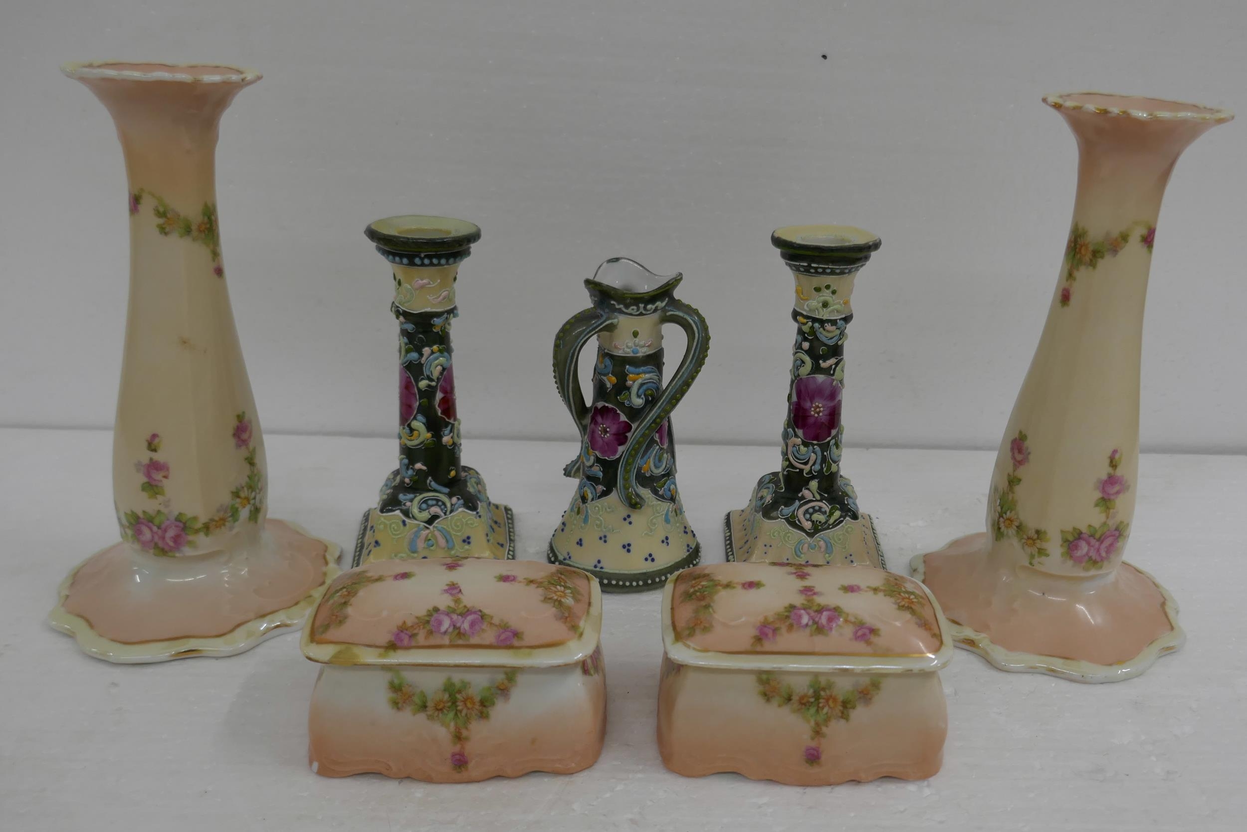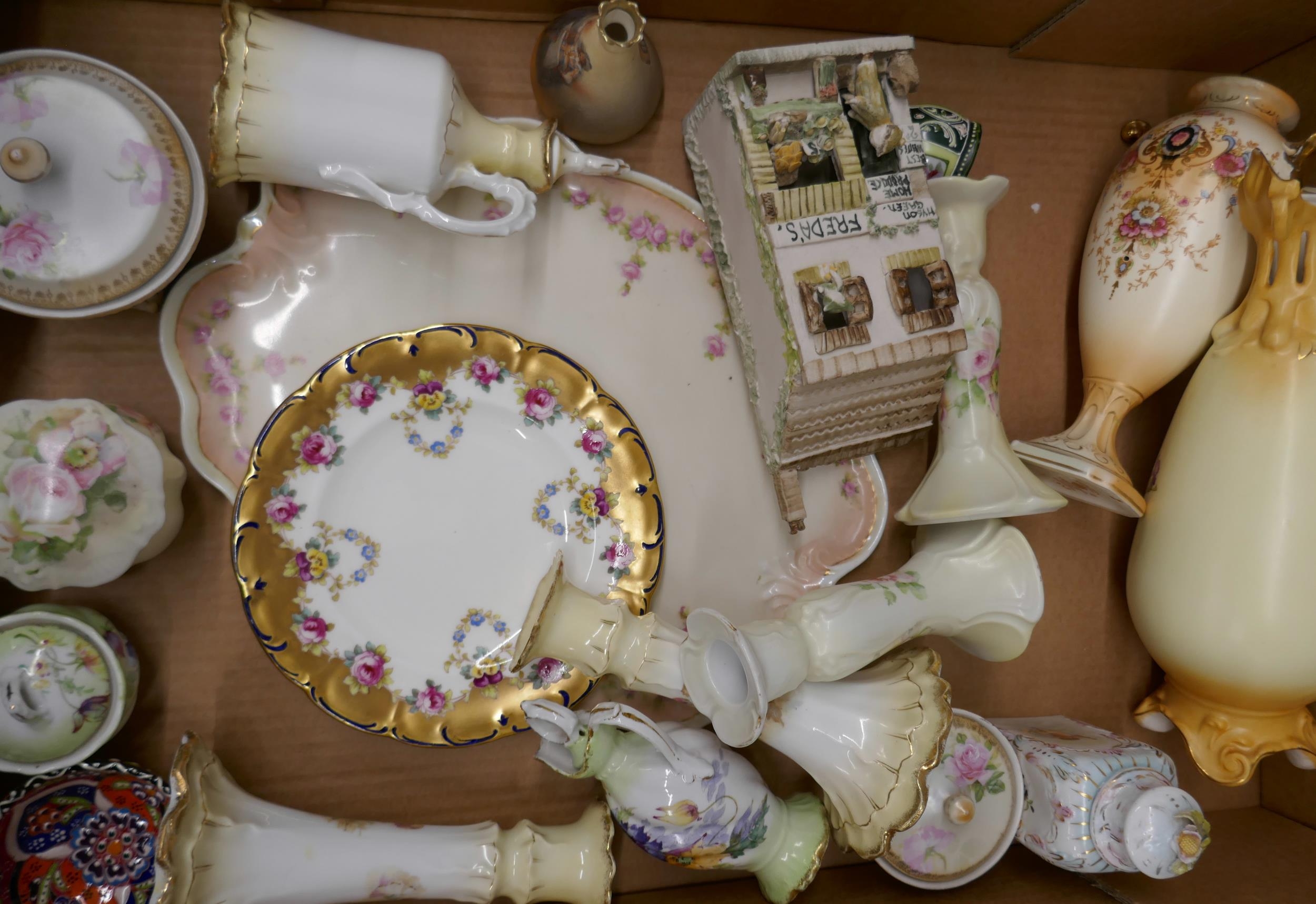 A large collection of porcelain and China, to include candlesticks, vases, trinket pots, plates, etc. Three boxes in total *Not available for packing and posting*
