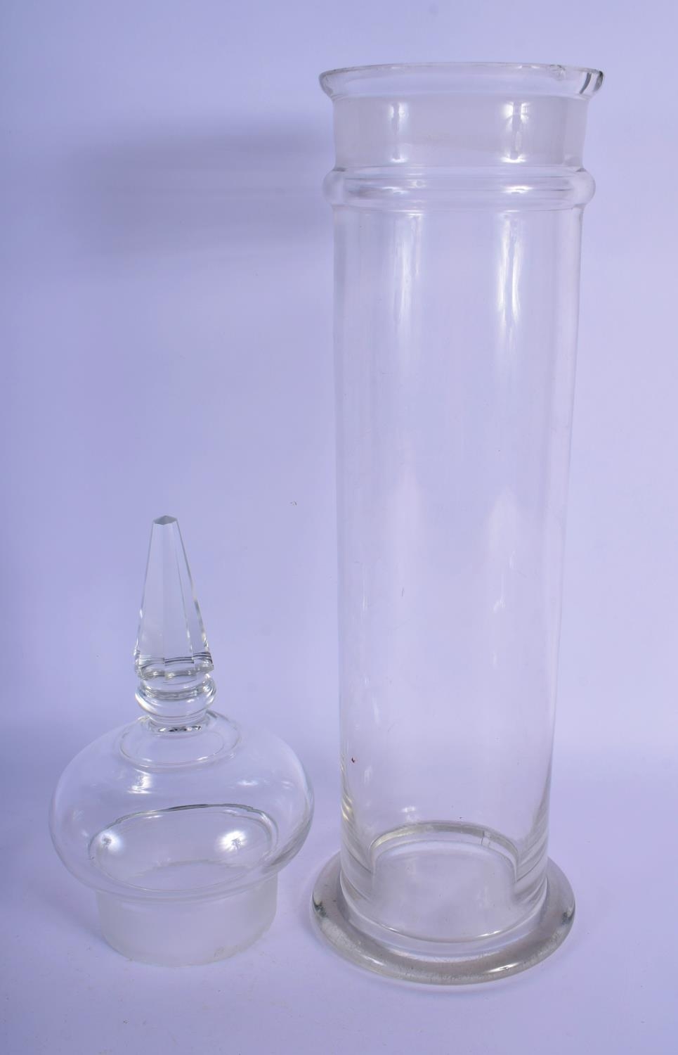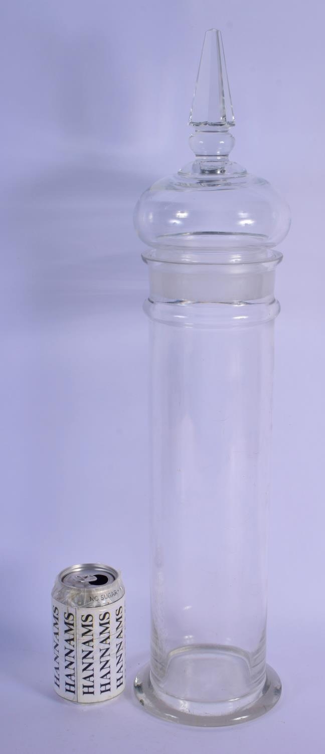 A LARGE VINTAGE CHEMIST JAR AND COVER. 54 cm high.
