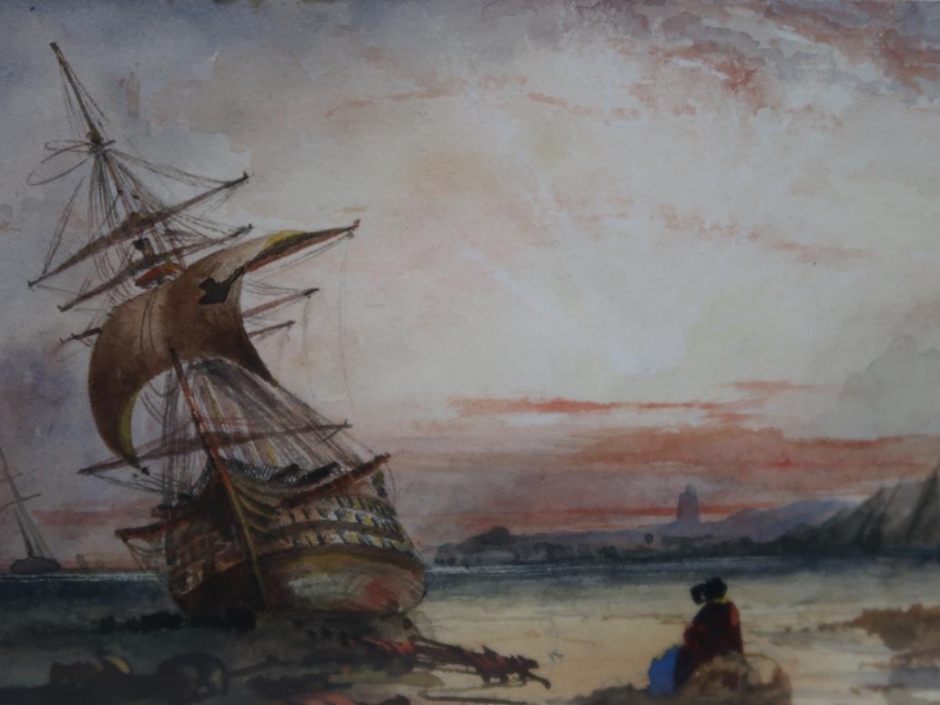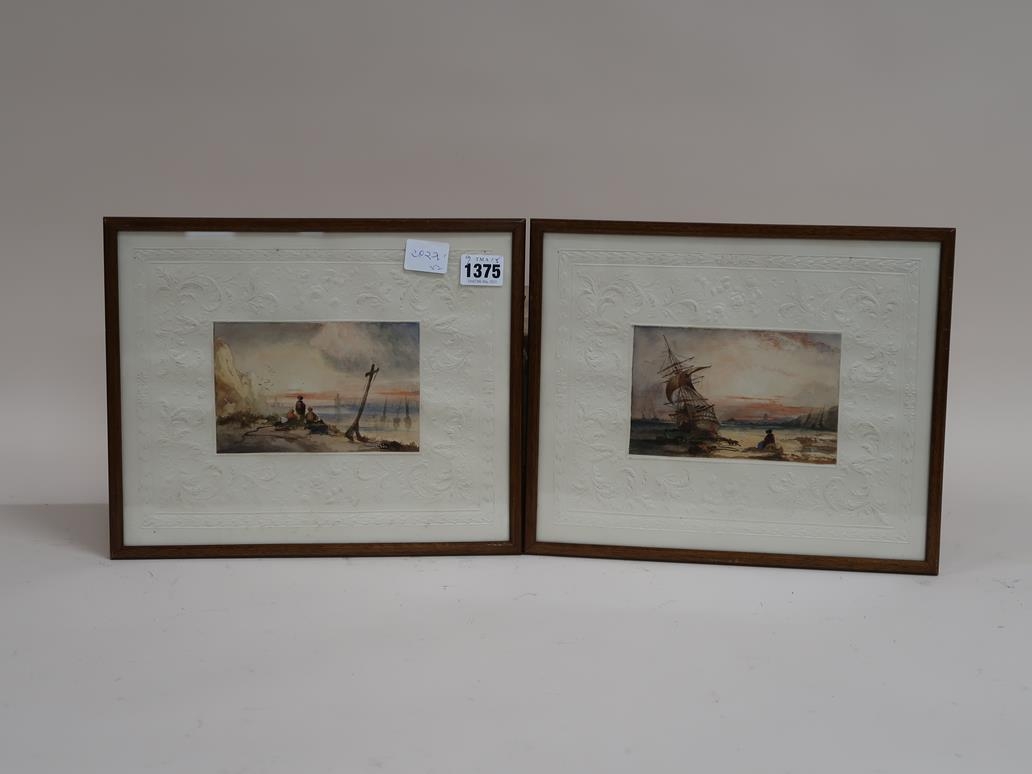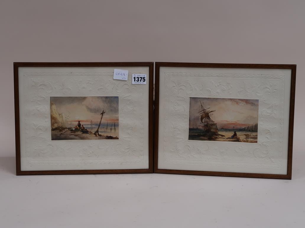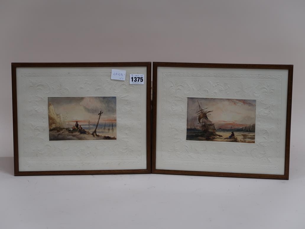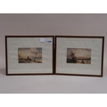 SIGNED IN MONO - TWO 19C COASTAL SCENES, WATERCOLOURS, EACH F/G, 9CMX 15CM