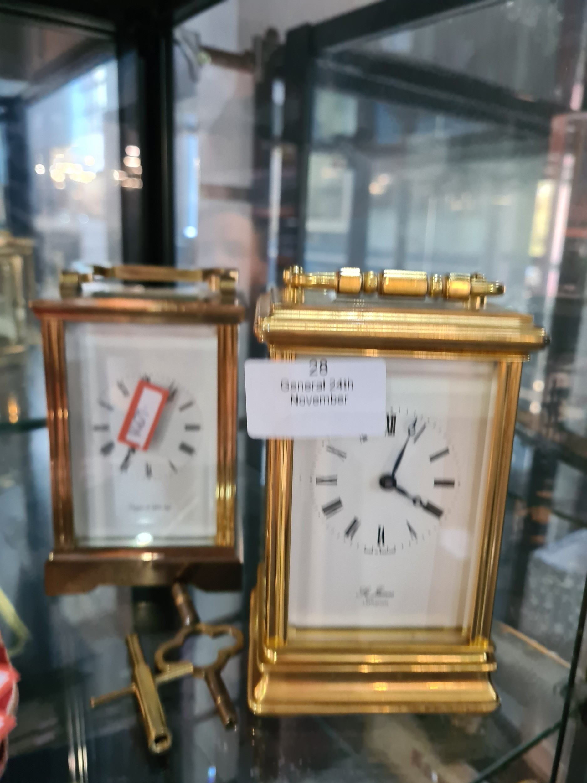 Two modern carriage clocks by St James and Mappin & Webb