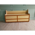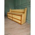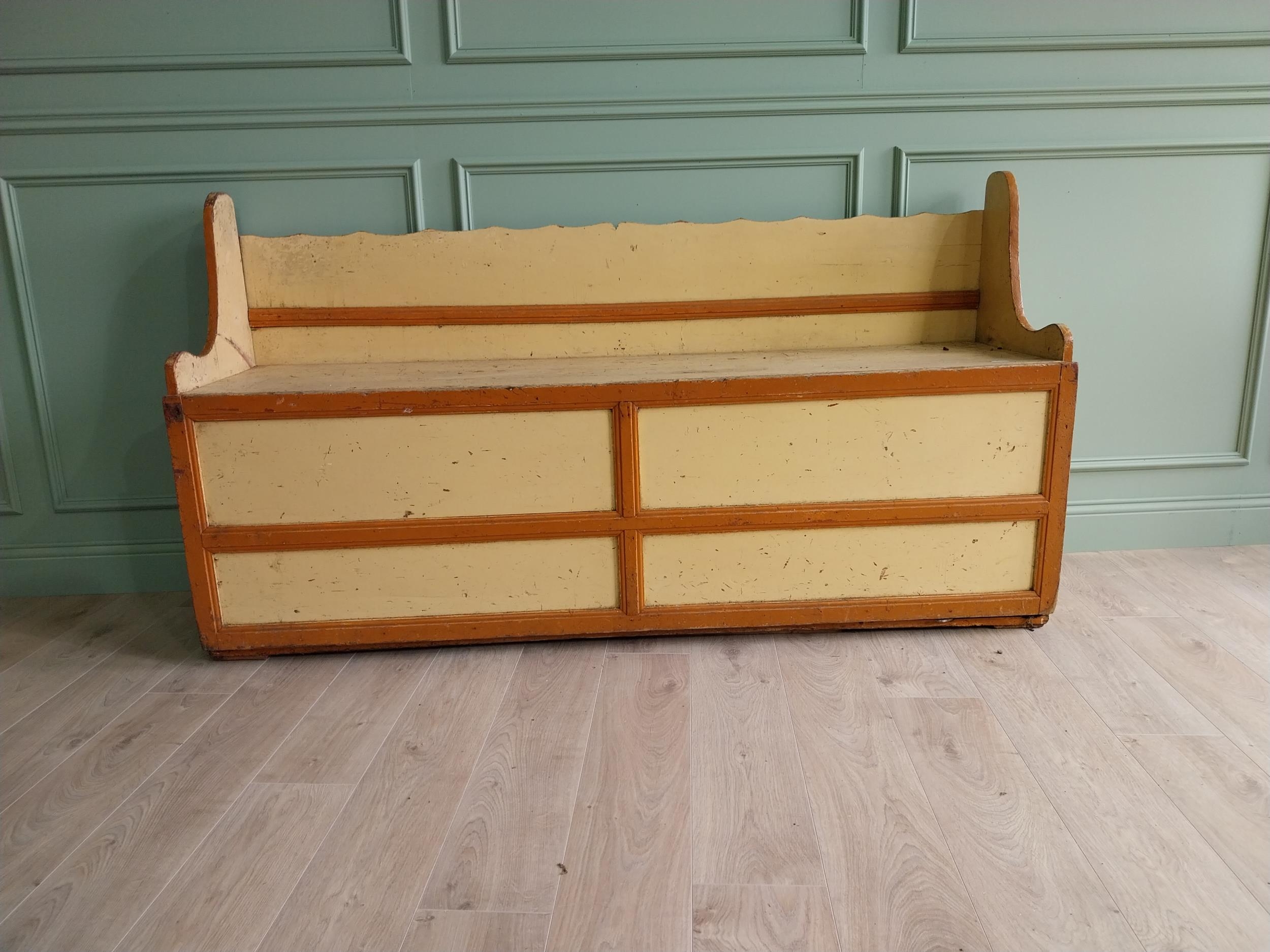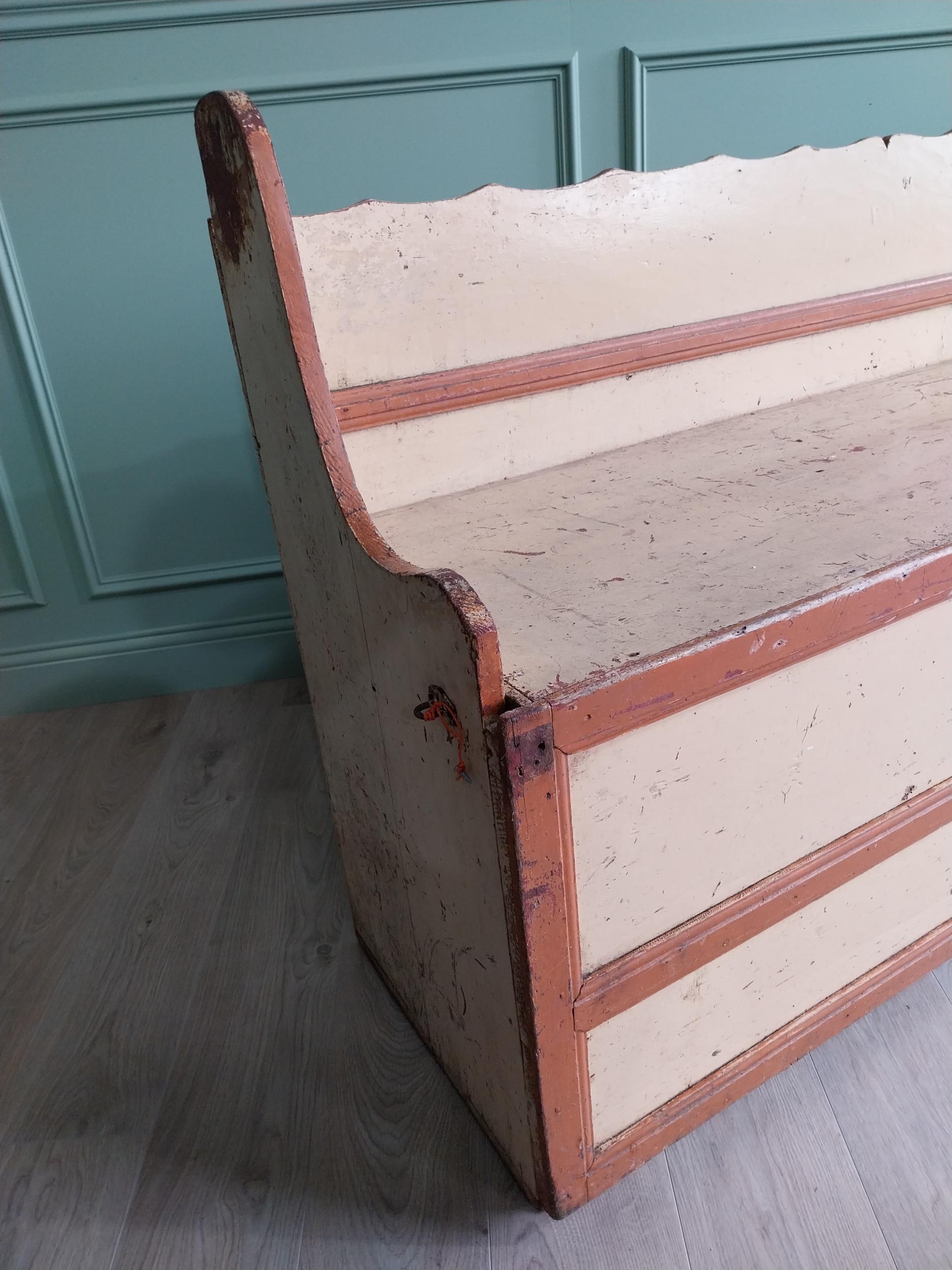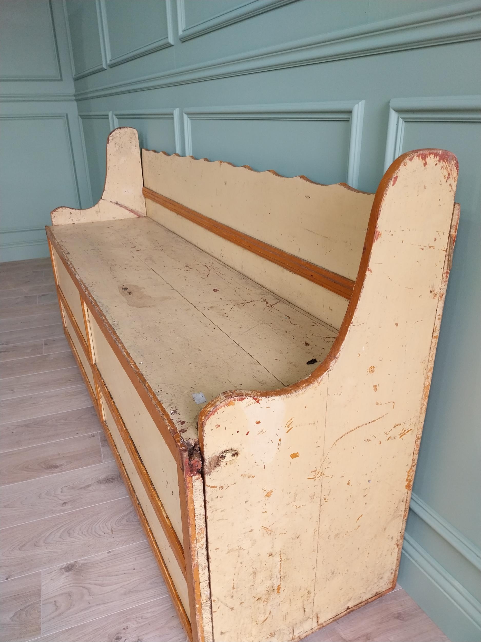 19th C. North of Ireland painted pine settle bench with original paint. {102 cm H x 188 cm W x 52 cm D}. U